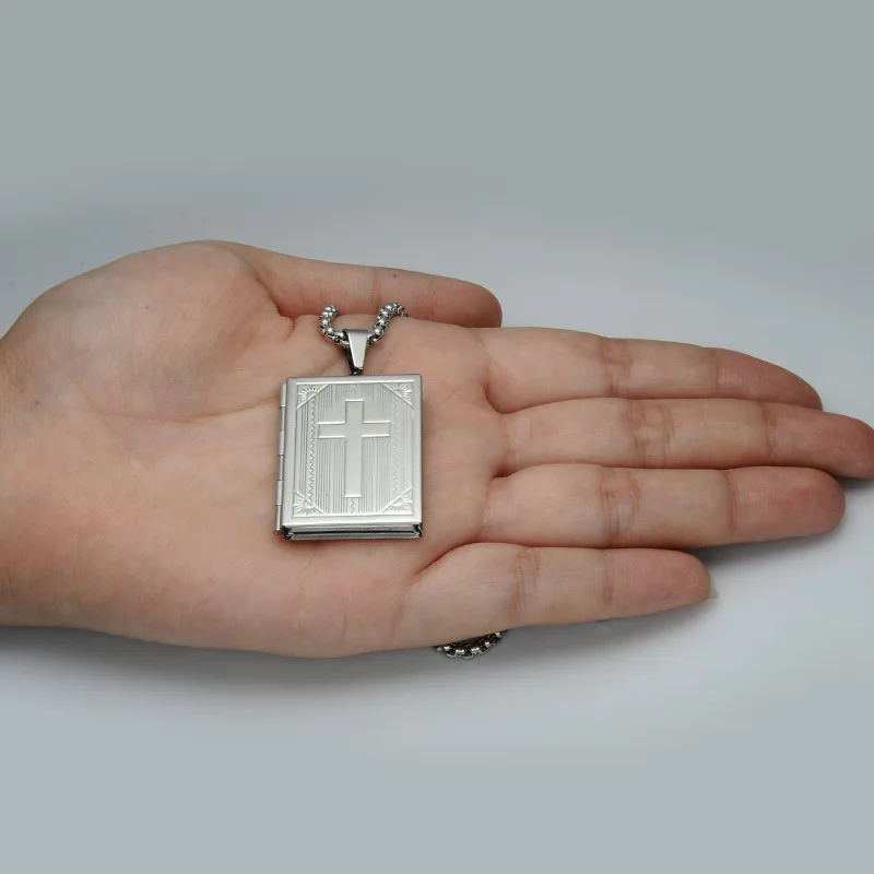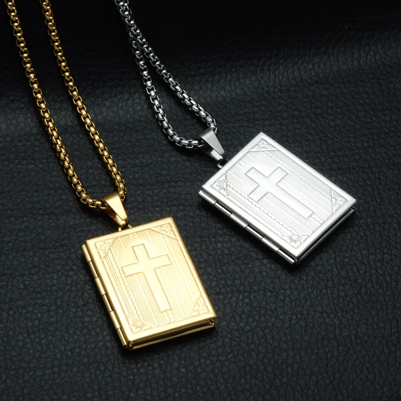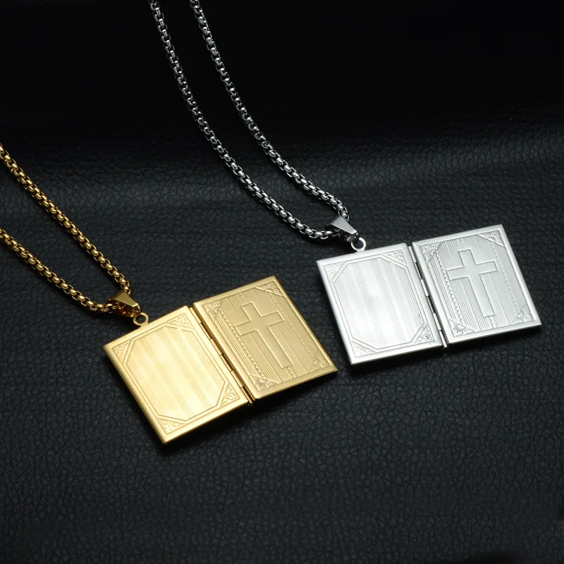 Нержавеющая сталь святая Библейская книга Форма ожерелье Подвеска Крест