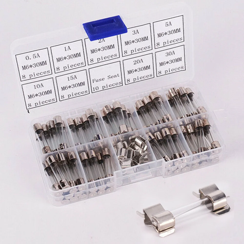 72 * Электронные стеклянные трубки предохранители (8 шт. x 0.5A, 8 шт. x 1A, 8 шт. x 2A, 8 шт. x 3A, 8 шт. x 5A, 8 шт. x 10A, 8 шт. x 15A, 8 шт. x 20A, 8 шт. x 30A)