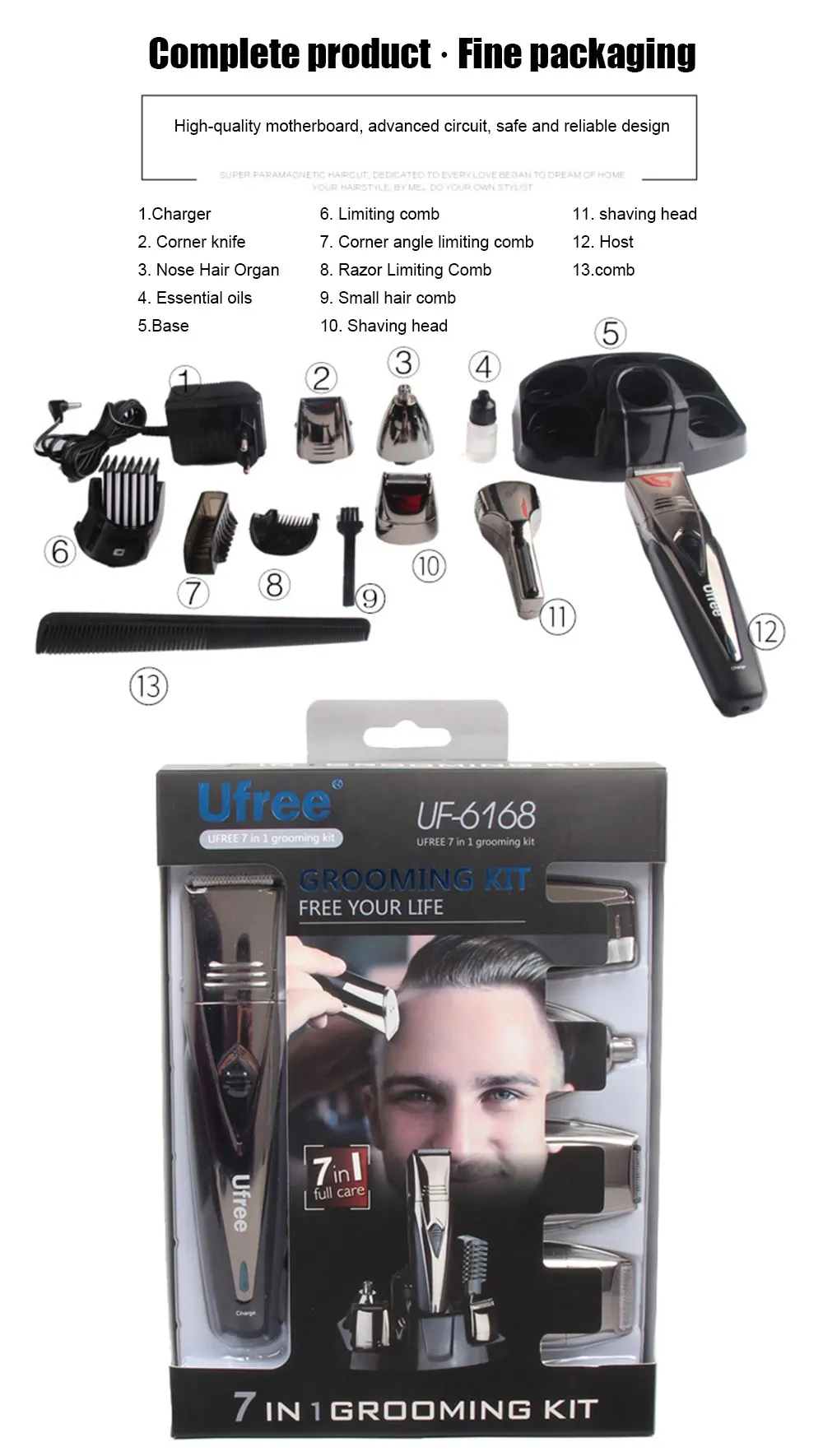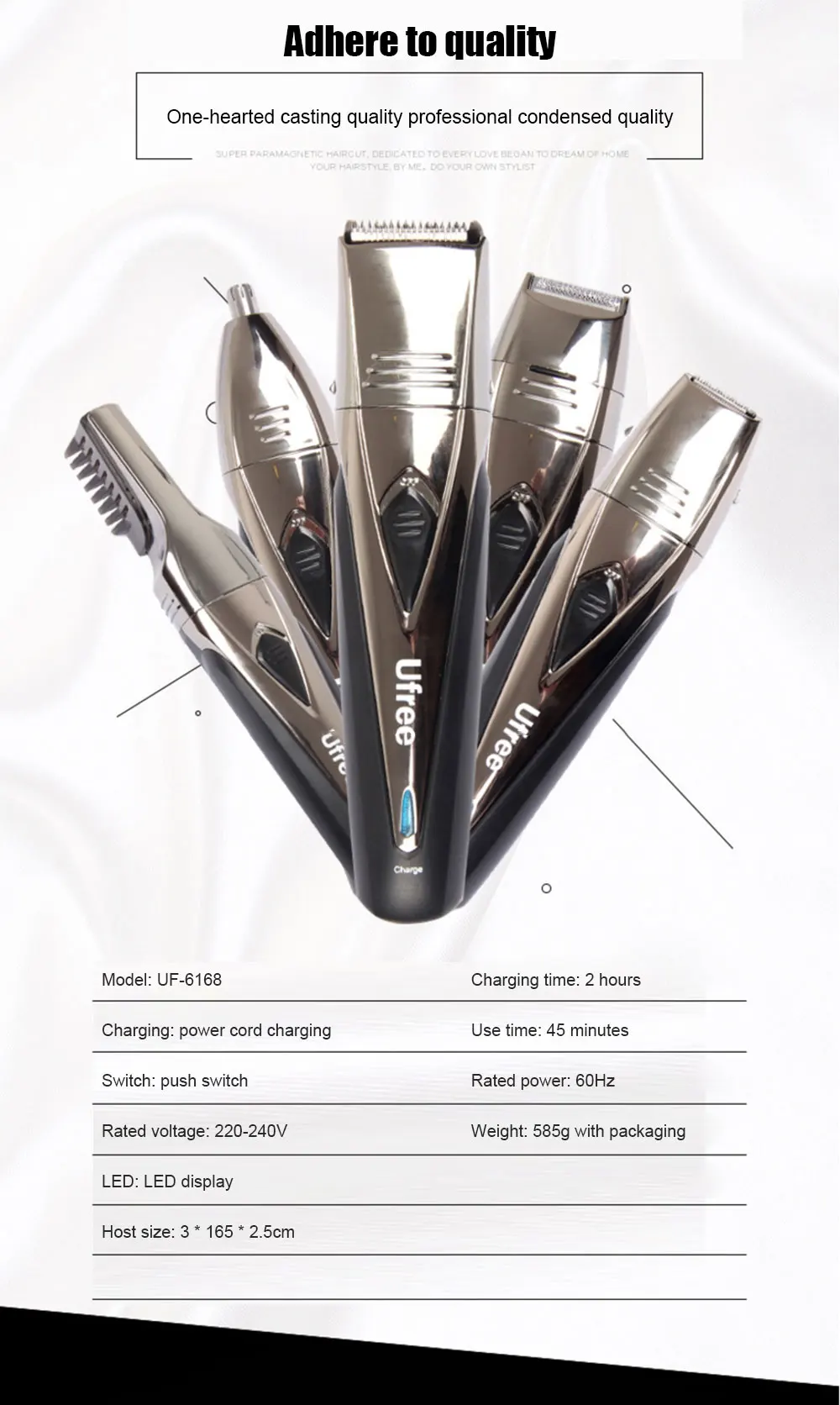 1. 5-в-1 дизайн: поставляется с 5 головками резаков, которые могут обрезать волосы в носу, ушные волосы, бороду, волосы, волосы на теле, бакенбарды и многое другое. Универсальное использование для всего тела.