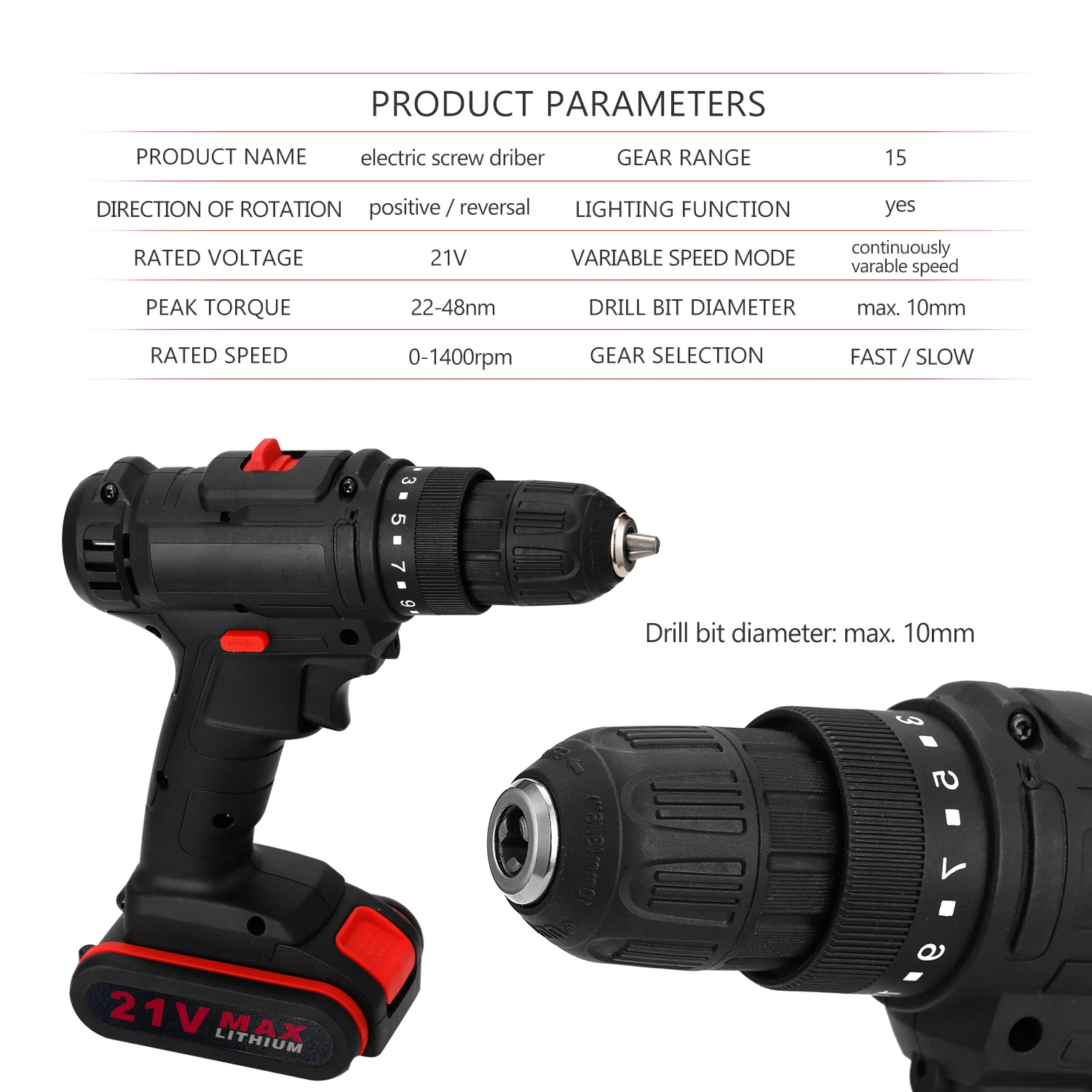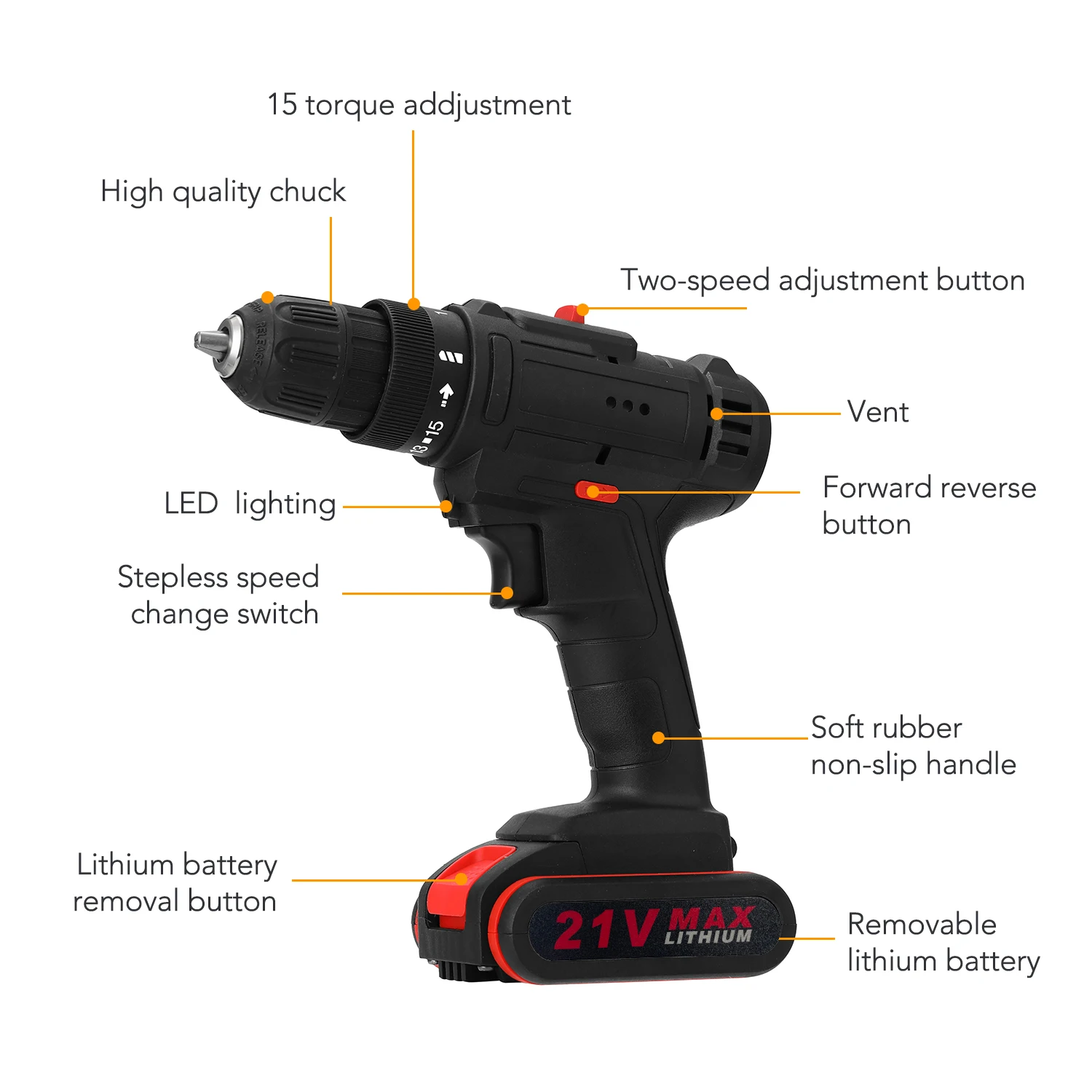 Эта сверхмощная аккумуляторная литий-ионная дрель идеально подходит для профессиональных или самодельных энтузиастов, которые хотят качество без затрат, дрель имеет удобный мягкая ручка для удобства использования и имеет две шестерни с 15 настройками крутящего момента, чтобы уменьшить риск повреждения винтовых головок. Он оснащен настройками движения вперед и назад и переменной скорости.