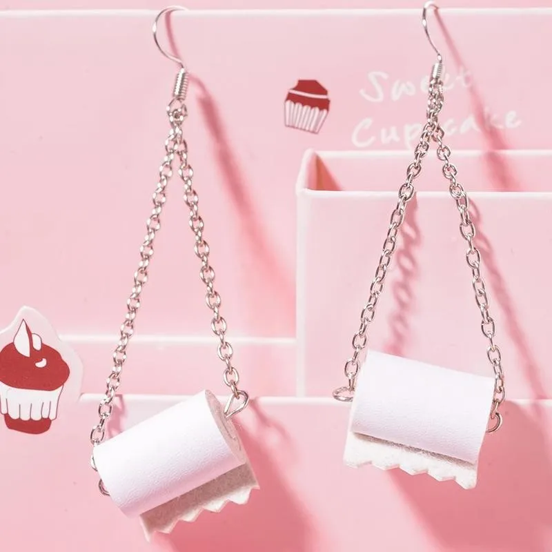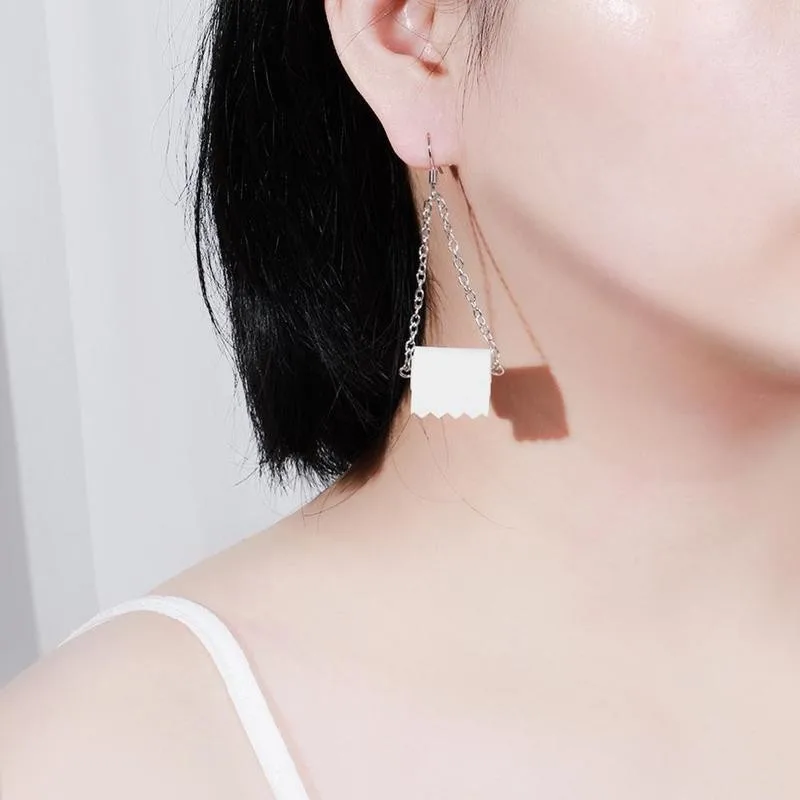 Новые креативные серьги-подвески для женщин 2020, забавные серьги в рулоне туалетной бумаги, модные ювелирные изделия