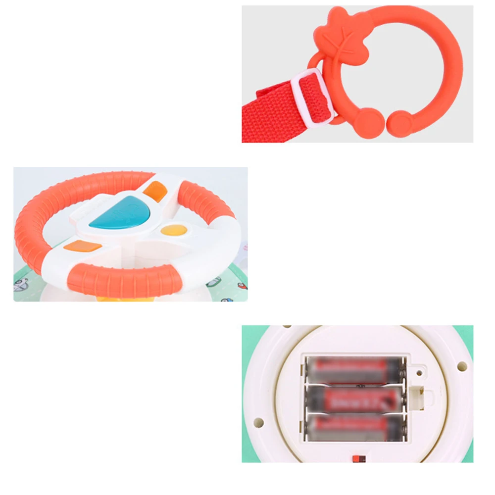 -Игрушечное автомобильное колесо оснащено рулевым колесом и рычагом переключения передач со звуками и огнями для развития и развлечения в дороге, звуками автомобилей, забавными мелодиями и звуками нажатия, большим зеркалом для безопасности ребенка.