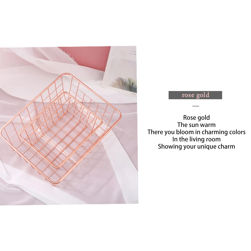 Скандинавский стиль, розовое золото, металлическая проволочная корзина для хранения, косметический Органайзер, держатель для туалетных принадлежностей, коллекция, полка для ванной комнаты