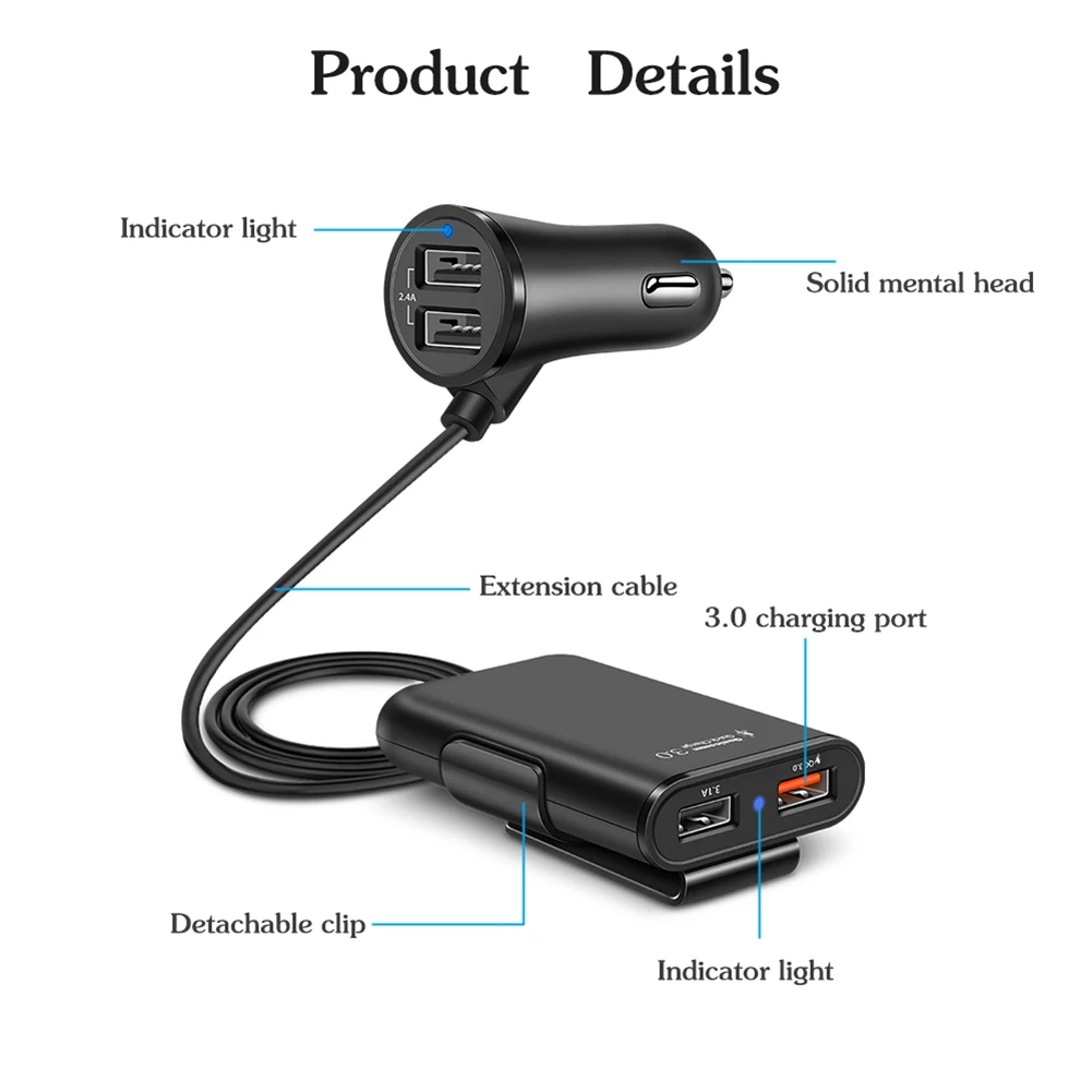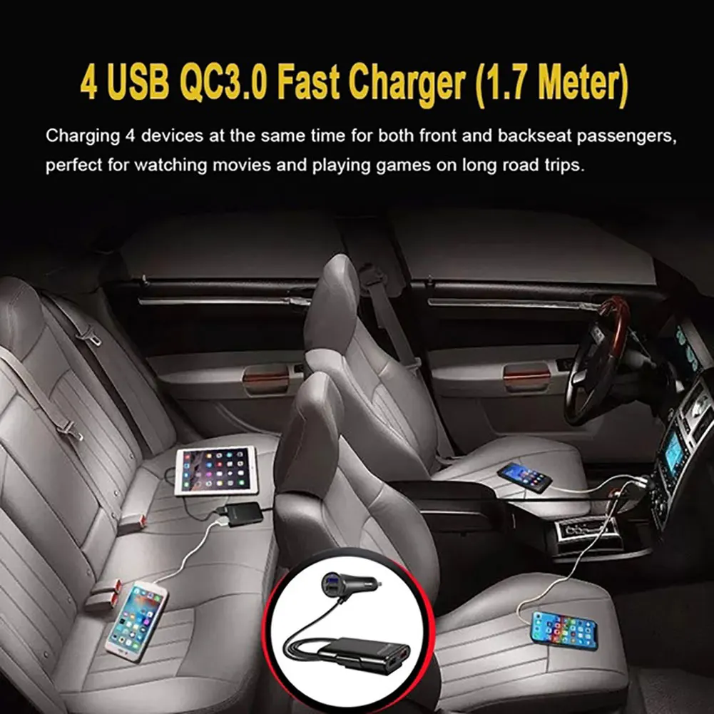 4 порта USB быстрая зарядка QC3.0 автомобильное зарядное устройство адаптер питания с удлинителем
