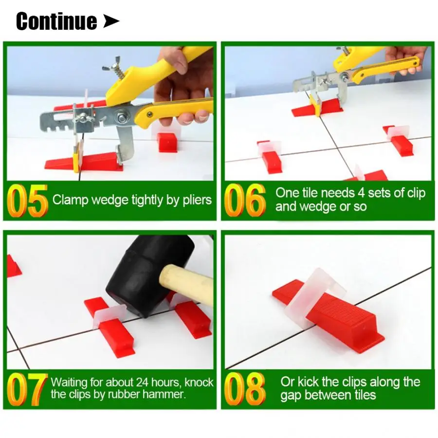 Этот инструмент для выравнивания плитки включает в себя 600 зажимов, 200 клиньев и пару плоскогубцев, что обеспечивает отличное удобство для плитки.