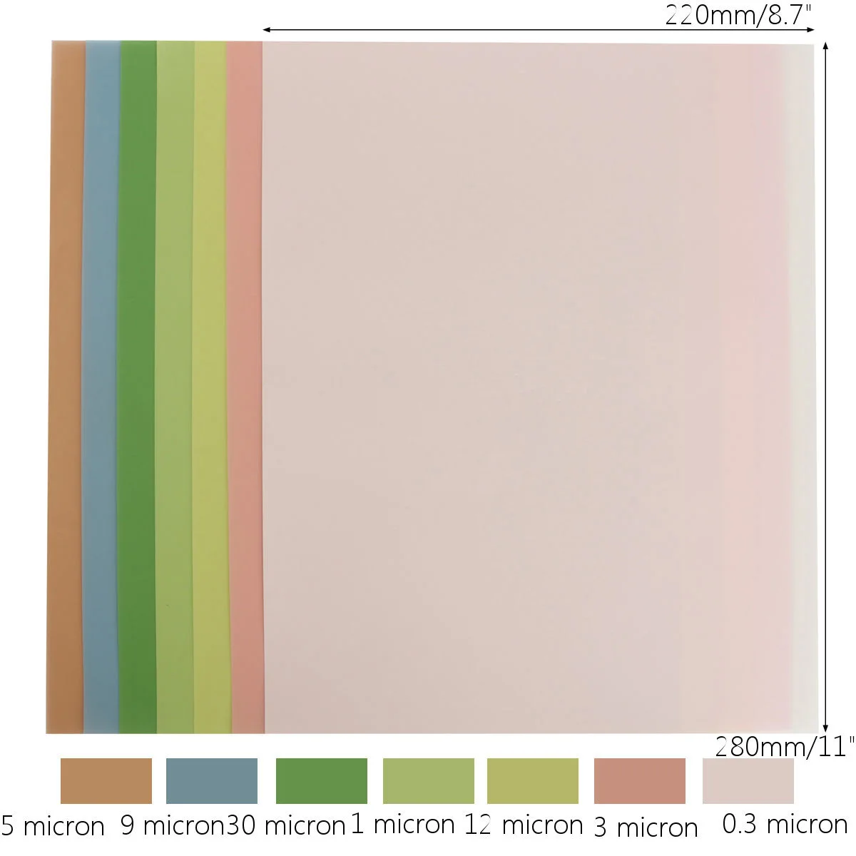 7 * пленочные листы (ассортимент 1 каждого из 30,12,9,5,3,1 и 0,3Μ)