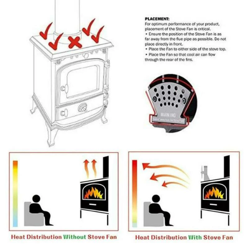 *Вентилятор печи питается от преобразования тепла в энергию без необходимости каких-либо батарей или электричества