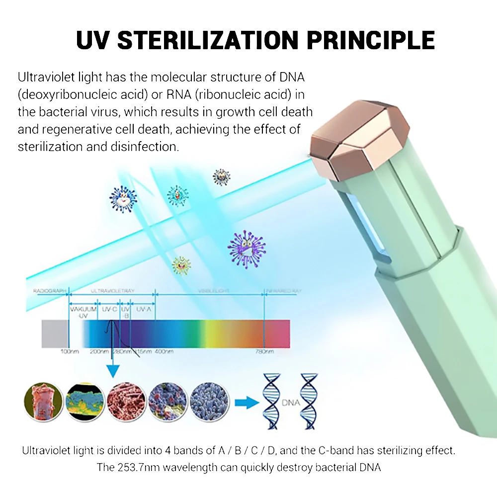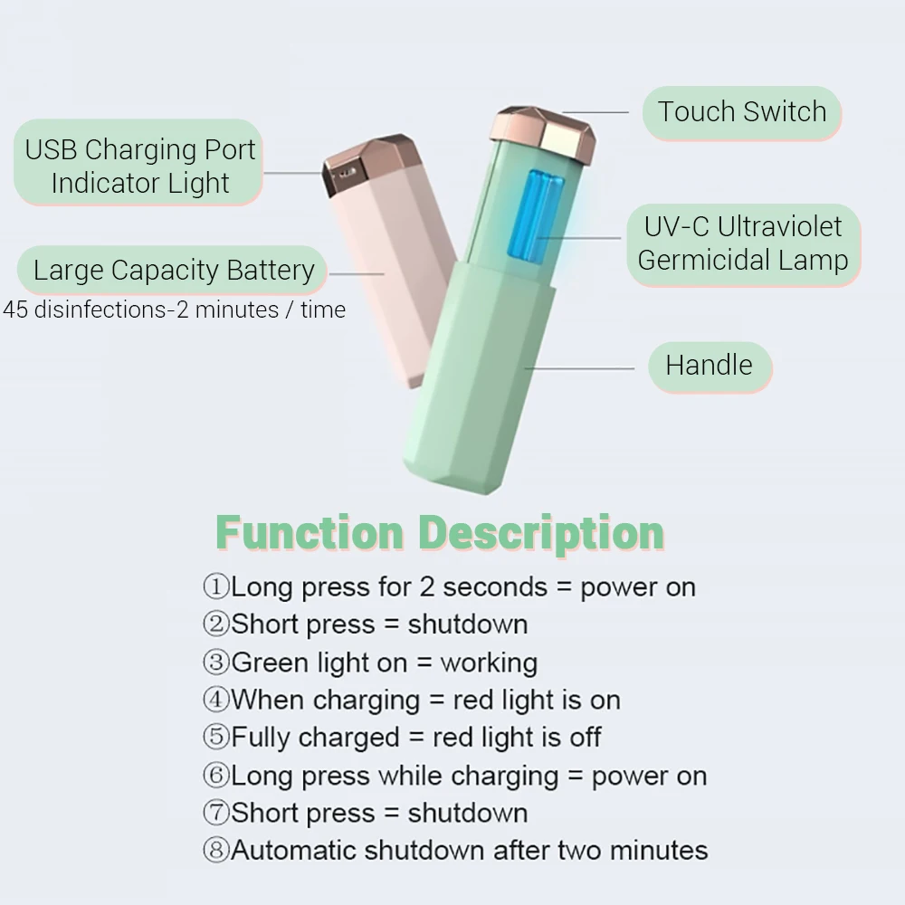 УФ-дезинфекционный свет компактный и легкий, удобно носить, не занимает много места для хранения.