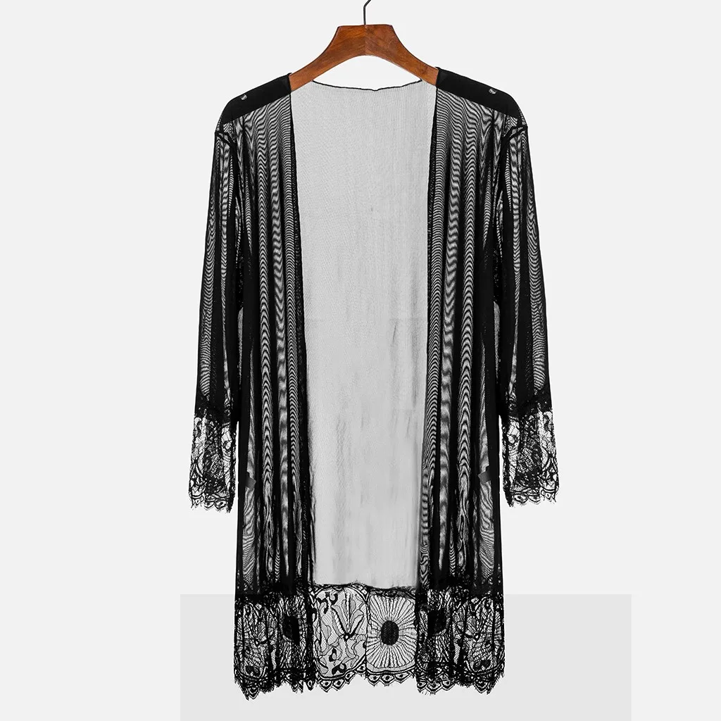 Женское кружевное Сетчатое платье с длинным рукавом, Пляжное нижнее белье, халат, Халат