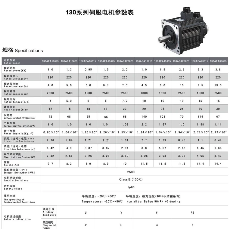 130 AC Серводвигатель набор 10н. М 1,5 кВт 1500 об/мин 130AEA15015-SH3