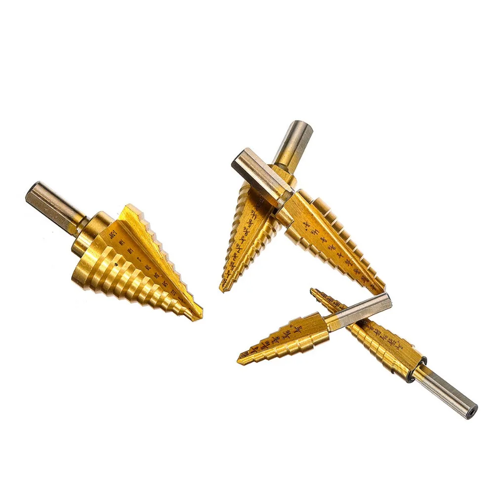 Бесплатная доставка, 6 шт. титановые сверла, набор стальных ступенчатых сверл, конус с несколькими отверстиями, 50 размеров, чехол, Новое поступление
