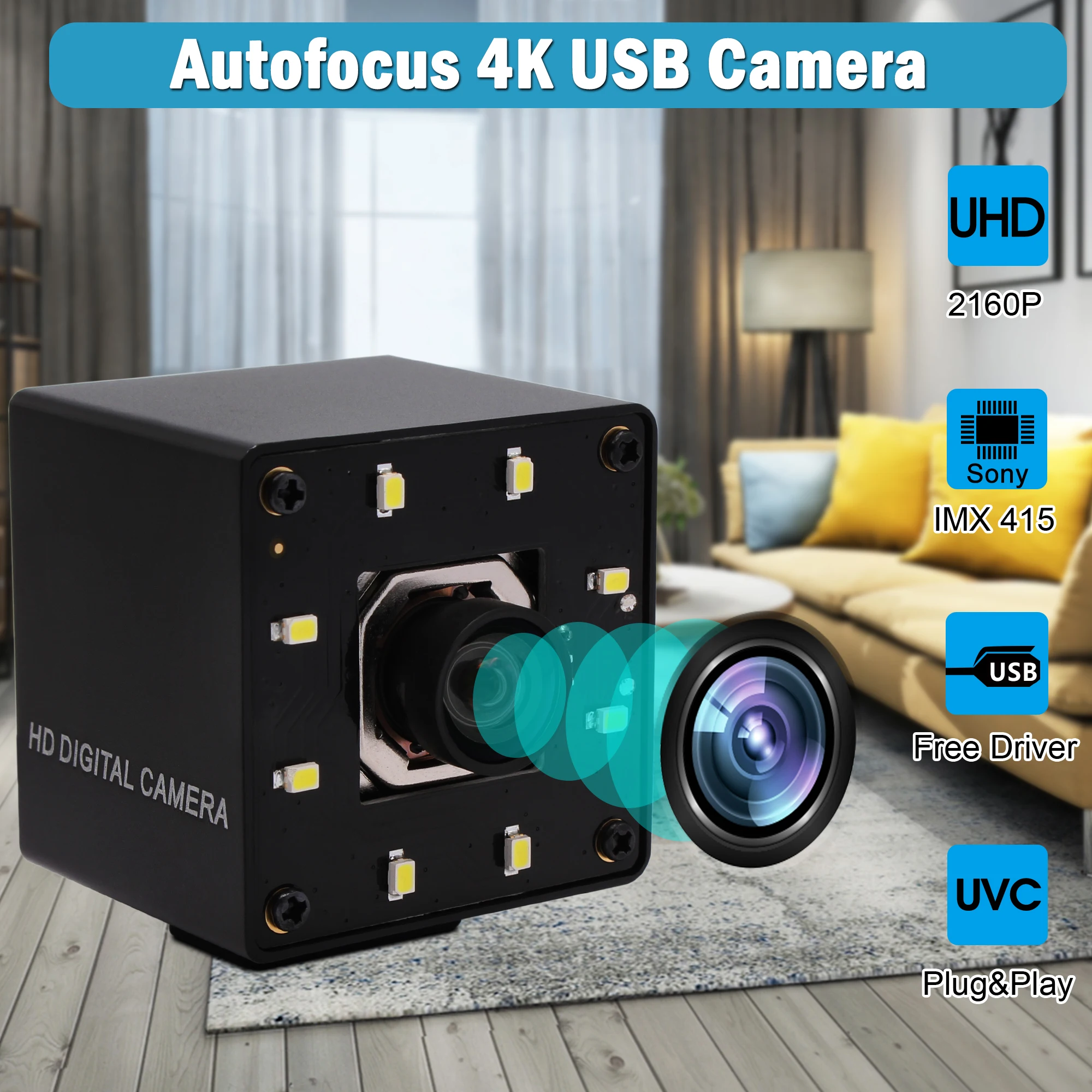 1) 1 шт. 4K Автофокус USB камера с белыми светодиодами, объектив опционально