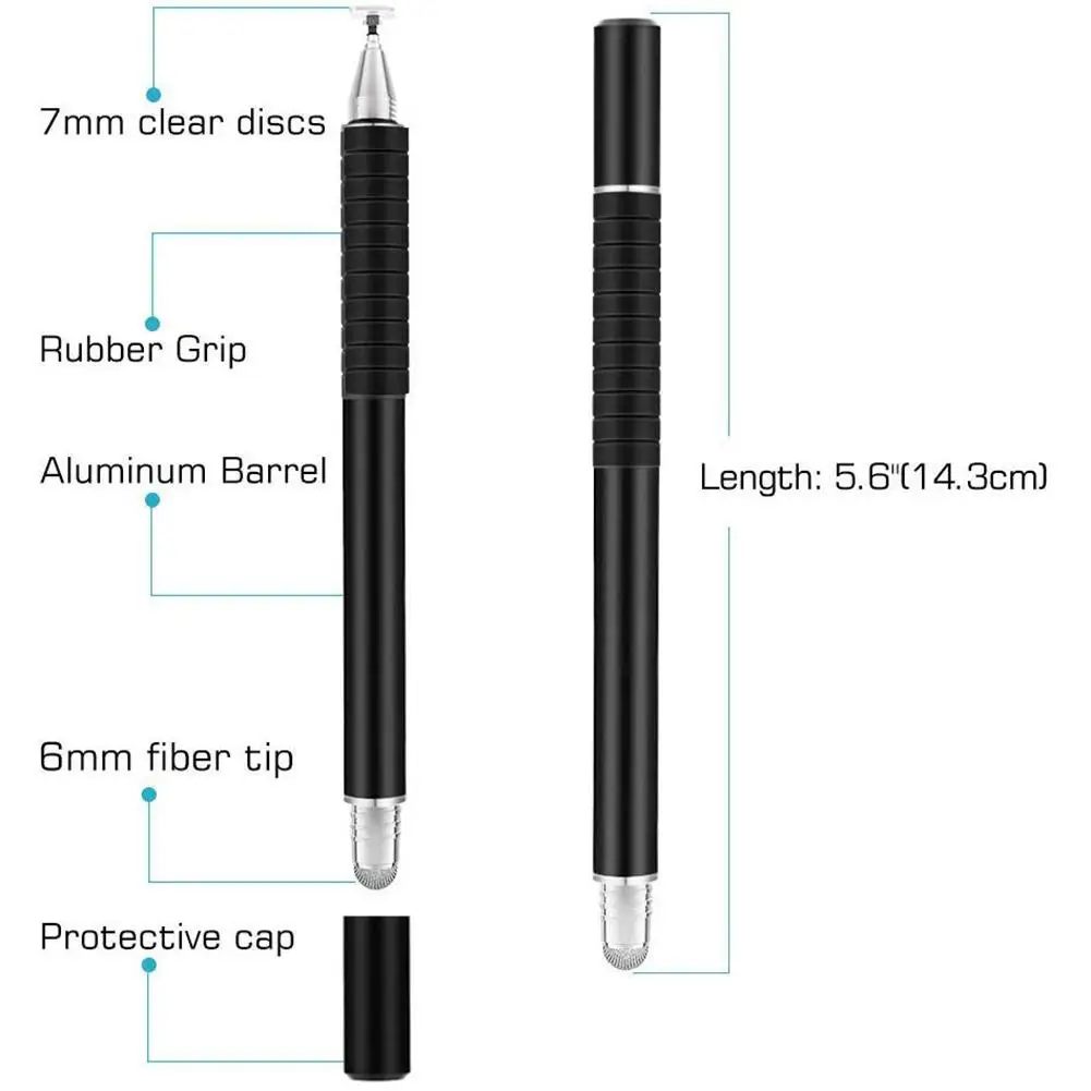 1. Стилус изготовлен из алюминия и нержавеющей стали с удобной рукояткой. Активный стилус составляет 140 мм в длину и объем трубка диаметром 0,35 дюйма (9 мм); Диаметр диска: 0,27 дюймов (6,8 мм), в том числе 2 мм Резиновый кончик волокна пера диаметр: 0,24 (6 мм); Вес: 24 грамма, лучший стилус для художников, журналистов, преподавателей и студентов.Волоконный наконечник * 2