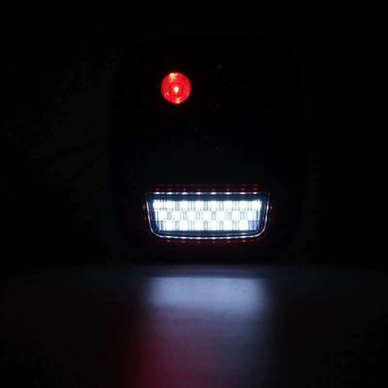 2. Белый провод, Красный 12 светодиодный, работает с низкой яркостью, как задний светильник, а нижний белый 6 светодиодный, работает как светильник номерного знака