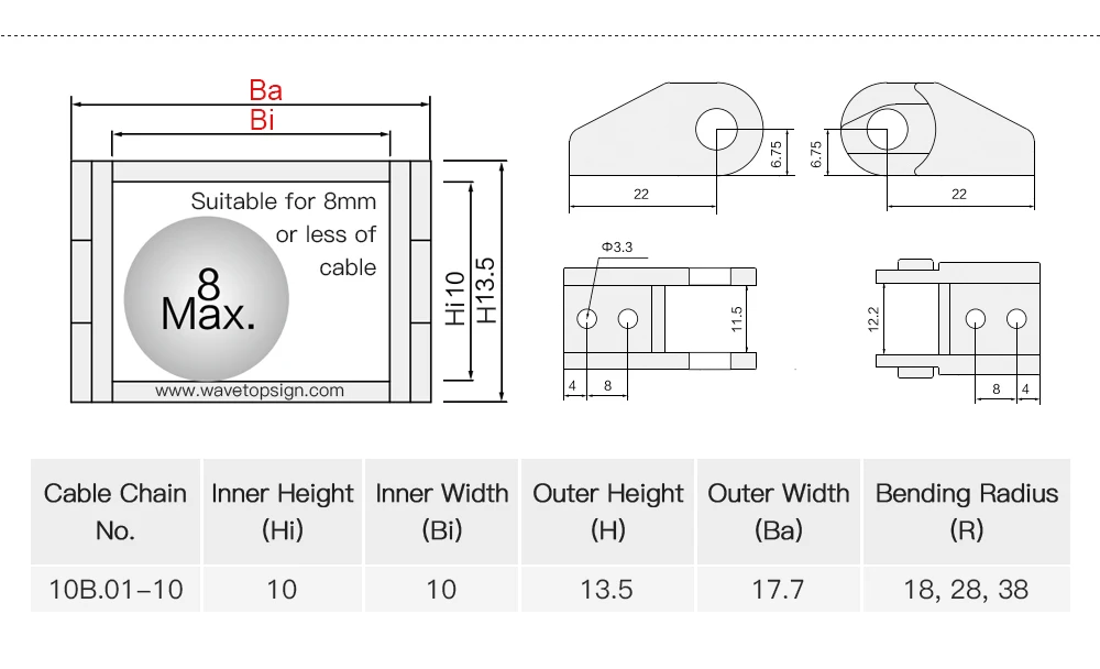 Радиус изгиба (R):18 / 28 / 38 / 48 / 75 / 100