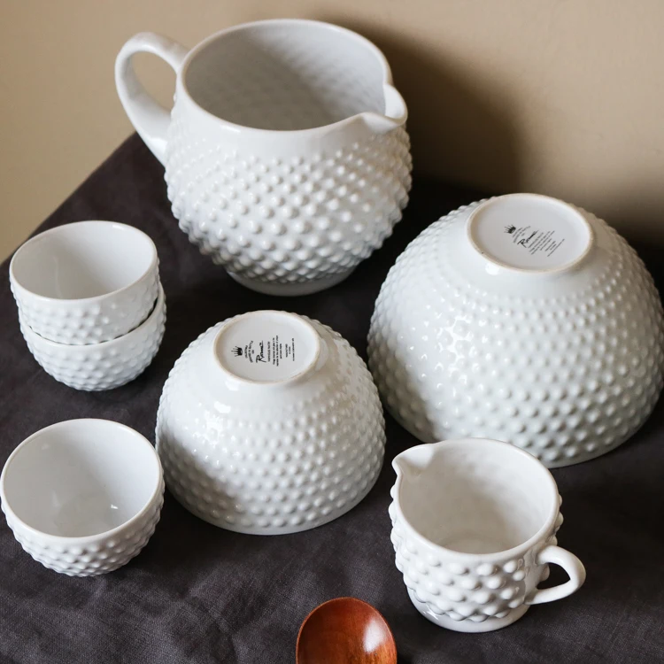 Керамическая белая стерео точечная рельефная Бытовая маленькая миска/молочный кувшин/чайник