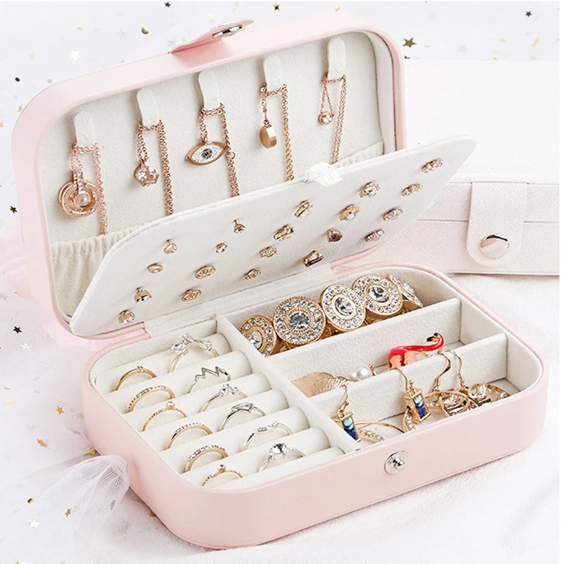 Портативная кожаная шкатулка для путешествий, Косметическая Шкатулка, органайзер для макияжа, губная помада, коробка для хранения, контейнер для красоты, ожерелье, подарок на день рождения