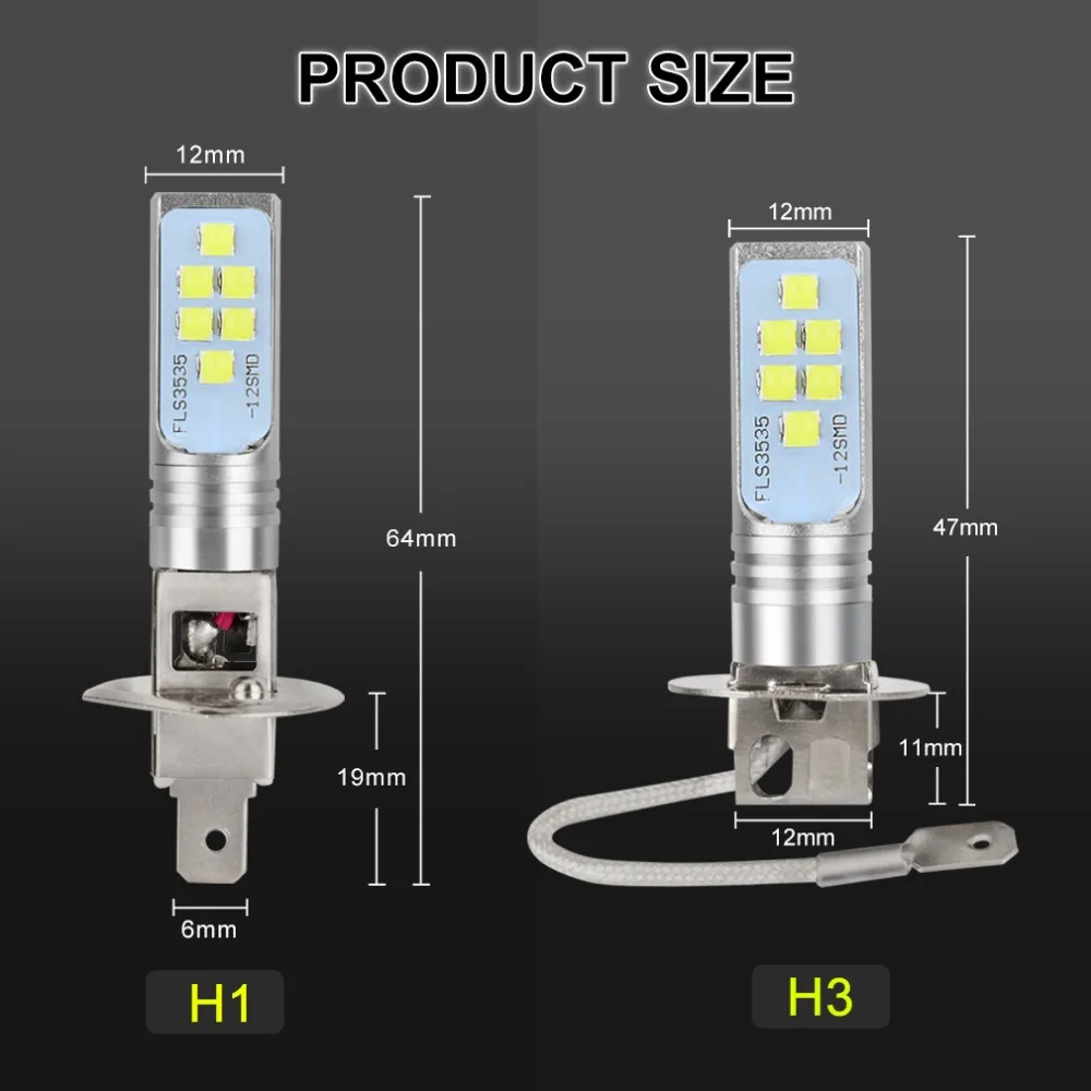 2шт H1 H3 светодиодные лампы супер яркие противотуманные фары 1400LM 6500K 12SMD 3535 чипы авто лампа для вождения День бега DC 12V