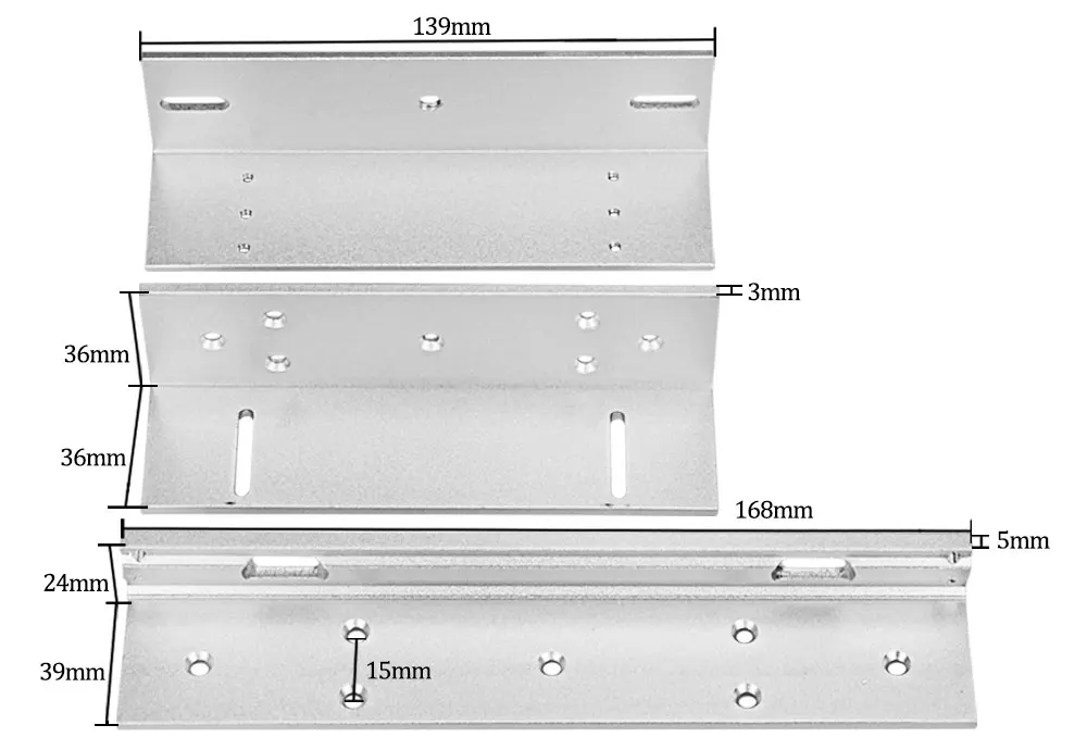 Размер: L кронштейн: 168*39*24 мм Z Кронштейн: 139*6*36 мм Материал: Высокопрочный алюминиевый сплав, поверхность распылителя песка Открытый угол: 90 ° Подходит для: деревянных дверей, огнеупорных дверей, дверей системы безопасности