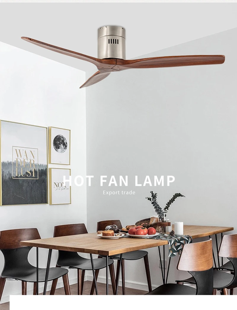 Скандинавский обеденный зал из цельного дерева без лампы потолочный вентилятор для спальни Простой низкий пол Американский бытовой вентилятор