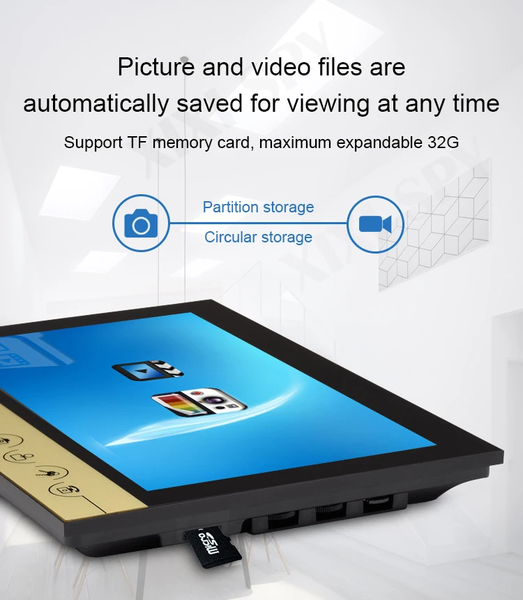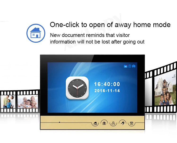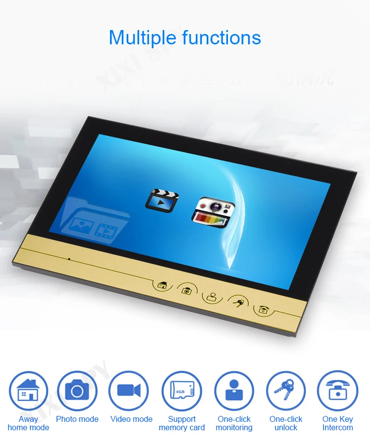 Вне дома режим Режим фото Режим видеосъемки Поддержка слот для карт памяти Нажатием одной кнопки наблюдения Нажатием одной кнопки разблокировки Один ключ домофон
