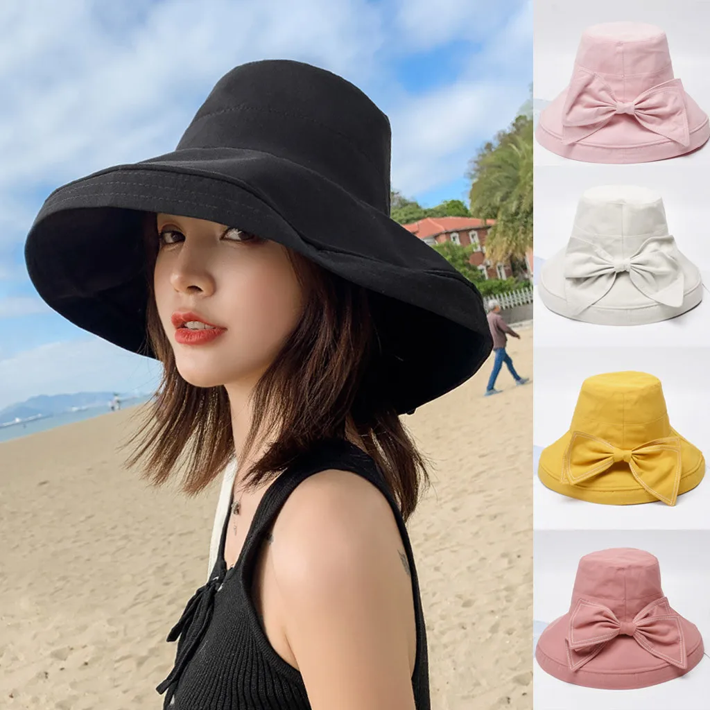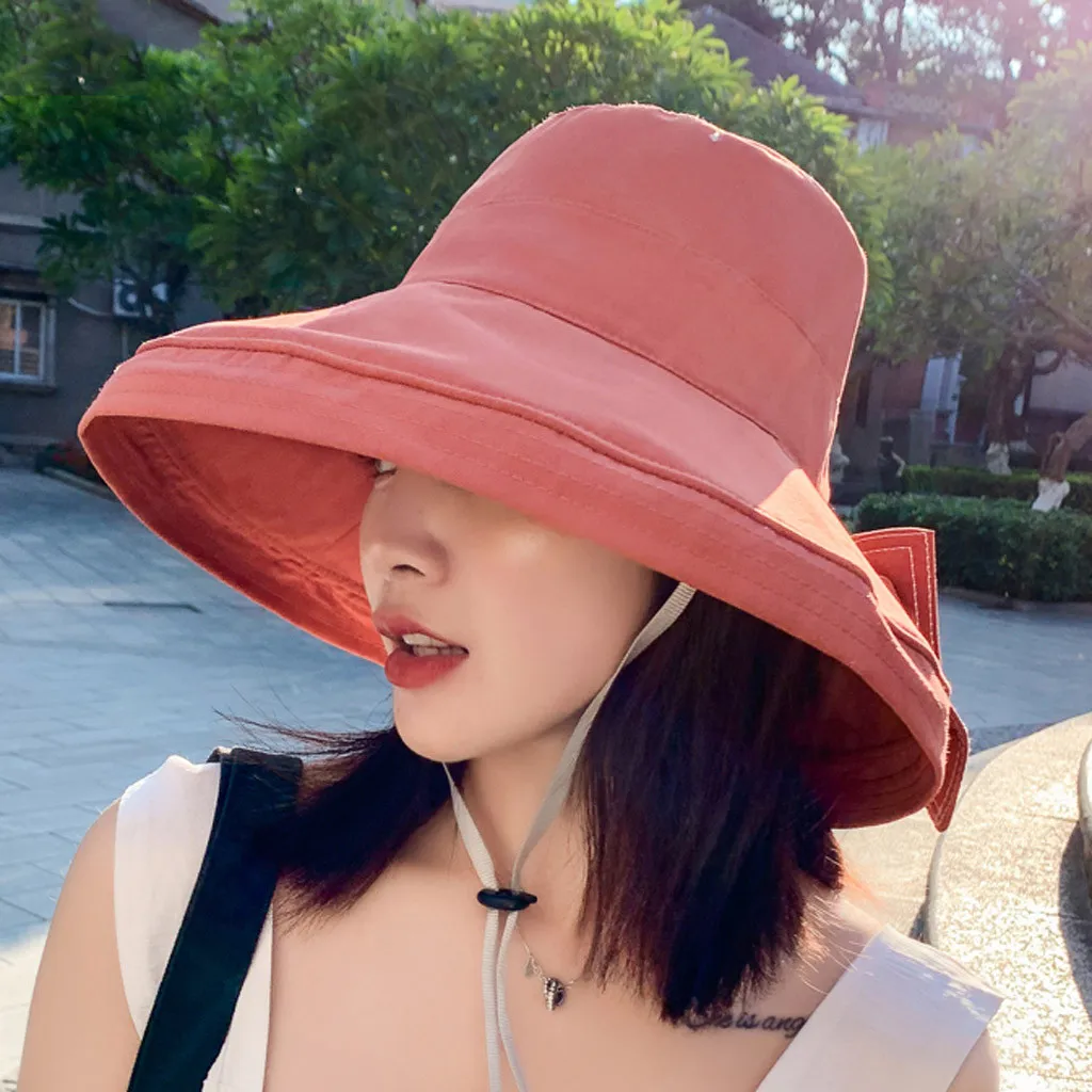Hat For Women 2020 Anti-UV Wide Brim Cotton Linen Sun Vacation Summer Panama Foldable Bucket Hat Large Brim Korean Beach Sun