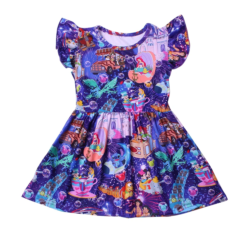 Детская одежда; летнее платье с рукавами-крылышками; изысканное молочное шелковое платье для маленьких девочек; детское летнее праздничное платье с героями мультфильмов