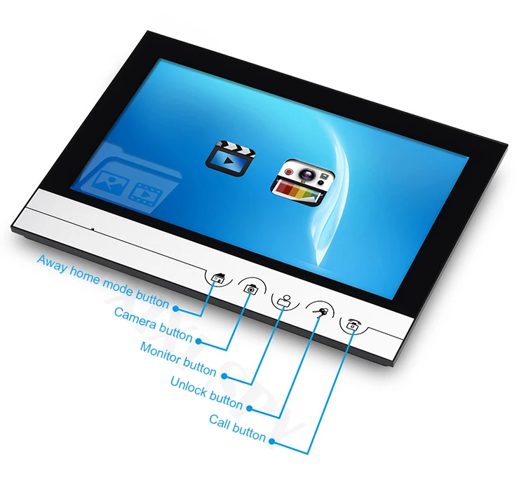 Вне дома режим Режим фото Режим видеосъемки Поддержка слот для карт памяти Нажатием одной кнопки наблюдения Нажатием одной кнопки разблокировки Один ключ домофон