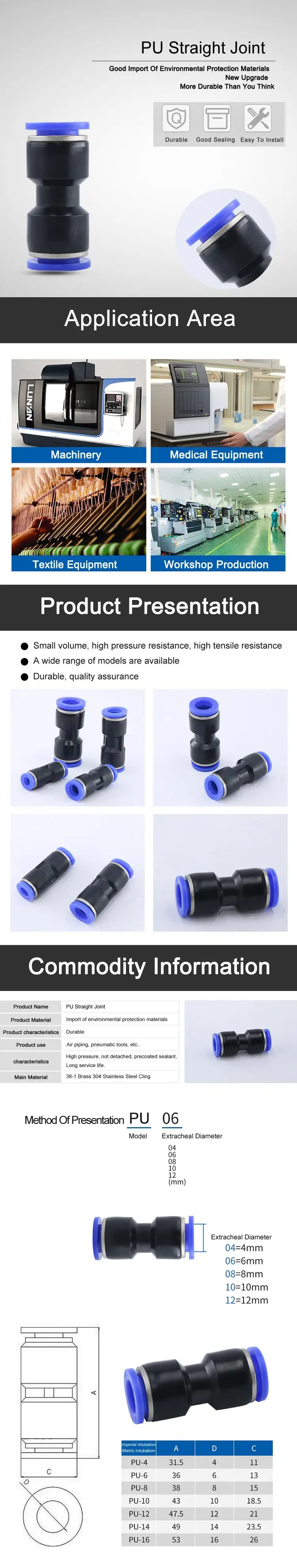 Пневматические Фитинги серии PU I типа 2-полосный прямой соединитель для трубки OD 4/6/8/10/12/14/16 мм
