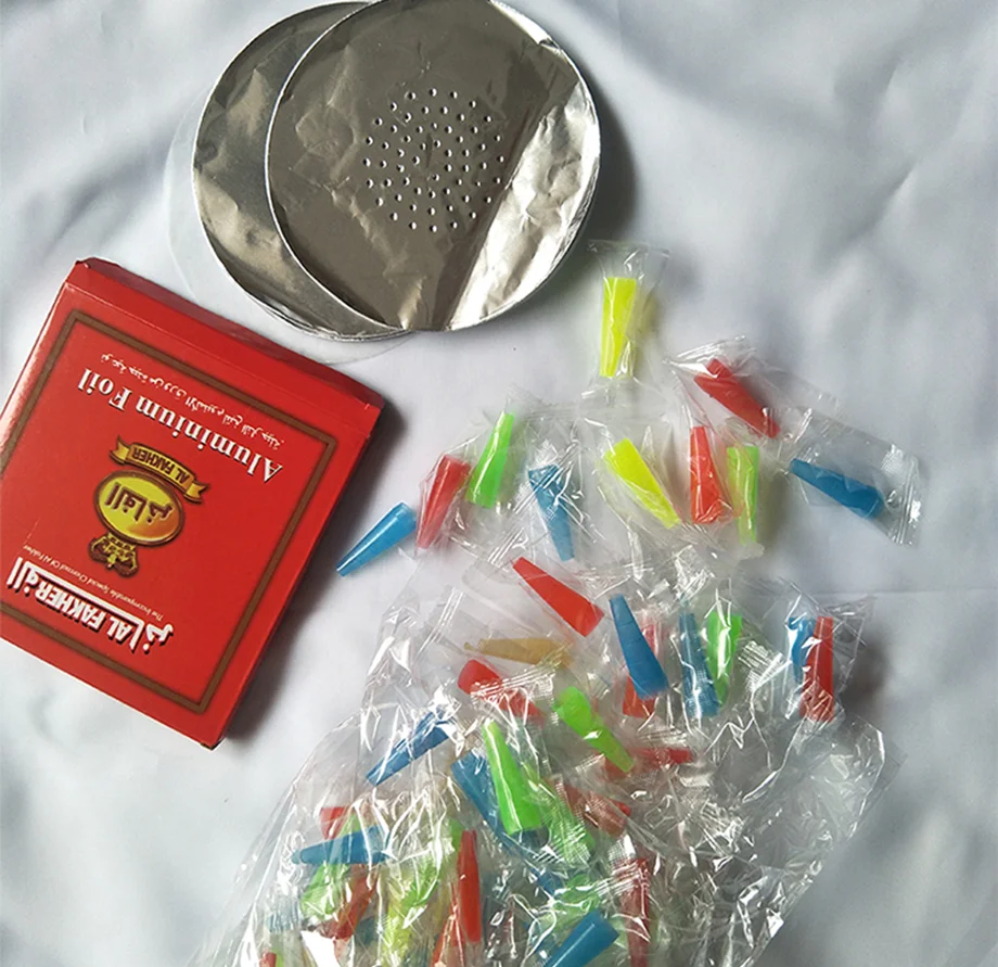 100-PC дизайн упаковки Воронка одноразовые, для кальяна мундштук, кальяна Чичи Алюминий фольга Оловянная с рисунком курительной трубки и аксессуары