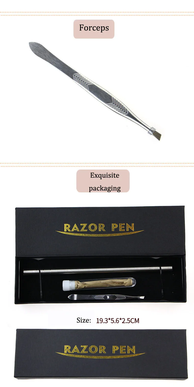 Single pen is without any accessories Blade size: 70MM * 3MM Generation: Without box (pen + blade): 38G Single pen is 26G, blade 5G