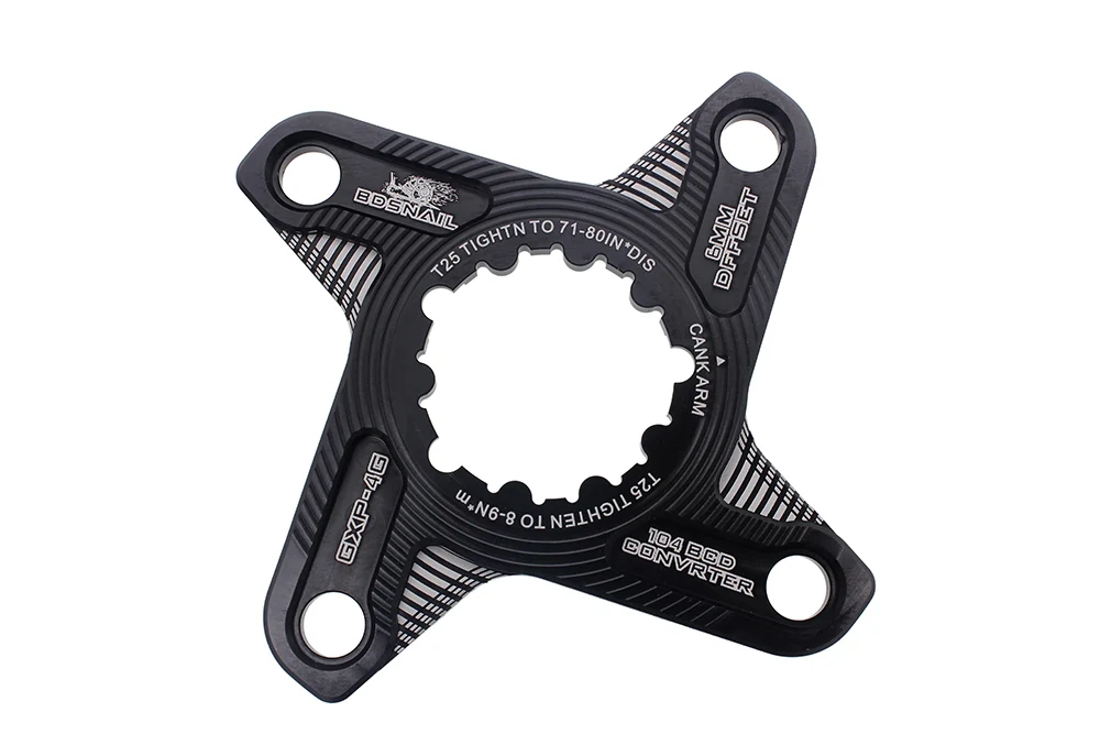 Цвет: черный Толщина: 6 мм Офсетная печать: 6 мм Вес: 104BCD/74g, 110BCD/70g Подходит для: Sram X9 XX1 X0 X01 GXP, DUB crank, single speed Обработка поверхности: анодирование, высокая скорость ЧПУ Посылка: 1 * кольцо для цепи