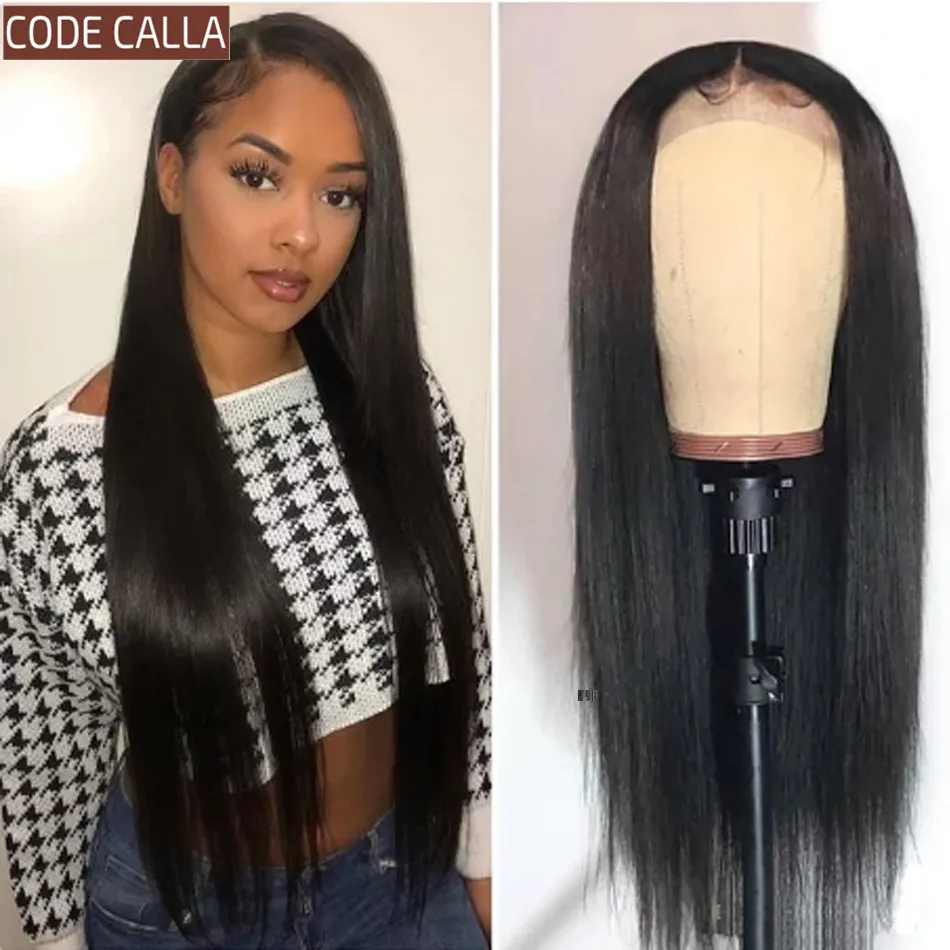 CODE CALLA 13X4 Синтетические волосы на кружеве человеческих волос парики для чернокожих Для женщин бразильские прямые человеческие волосы для наращивания на Синтетические волосы на кружеве al парик предварительно выщипанные волосы бесклеевой 4*4 Кружева Закрытие парик короткий парик, короткая стрижка