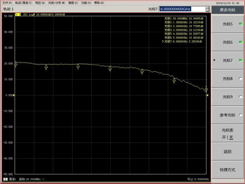\5Ширина полосы пропускания:50 МГцДля6 ГГц (Коэффициент усиления отличается на разных частотах.S21Индекс кривой)