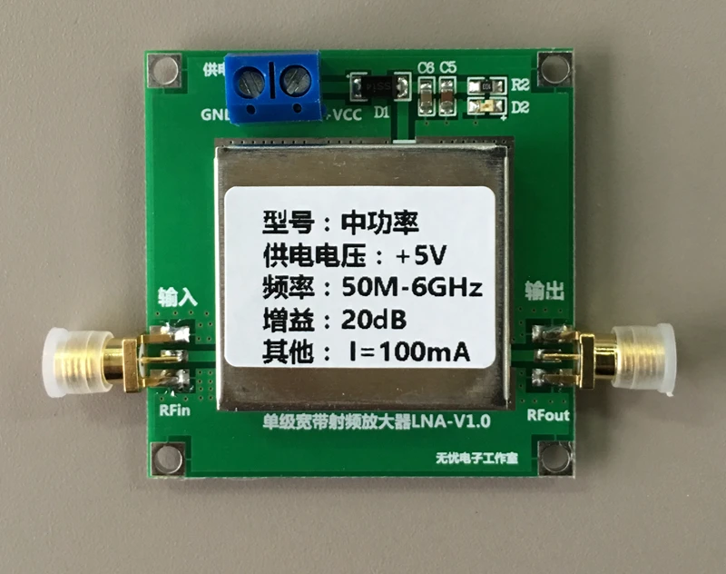 \Этот усилительС широким диапазоном частот, стабильностью усиления, уровень шума небольшой. Большой динамический диапазон (20dBm @ 1dBP) и другие преимущества, особенно подходит для различных радиочастотных передающих схем, увеличение расстояния связи! Широко используется в коротких волнах, fm-радио, приемнике дистанционного управления, усилителе кабельного ТВ сигнала, Beidou,GPSSatellite навигации, 2,4 GBluetooth, WIFIRadio частоты усиления мест, таких как радиочастотный конец приемника!Усилитель имеет экранированный корпус, защита от обратного подключения диода.