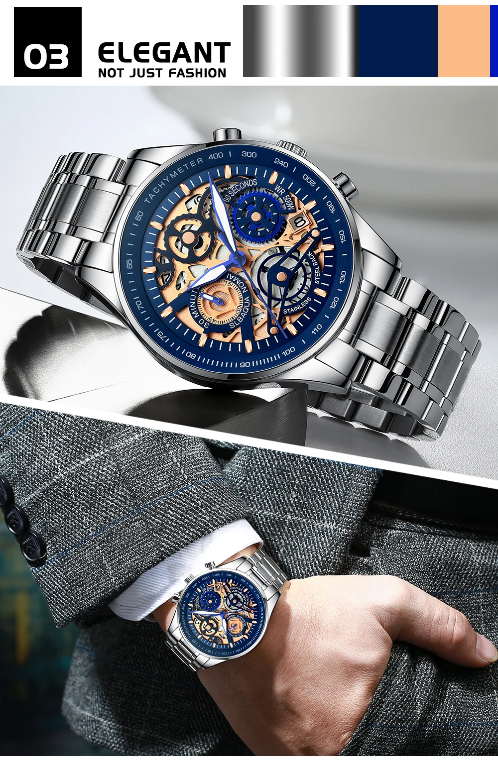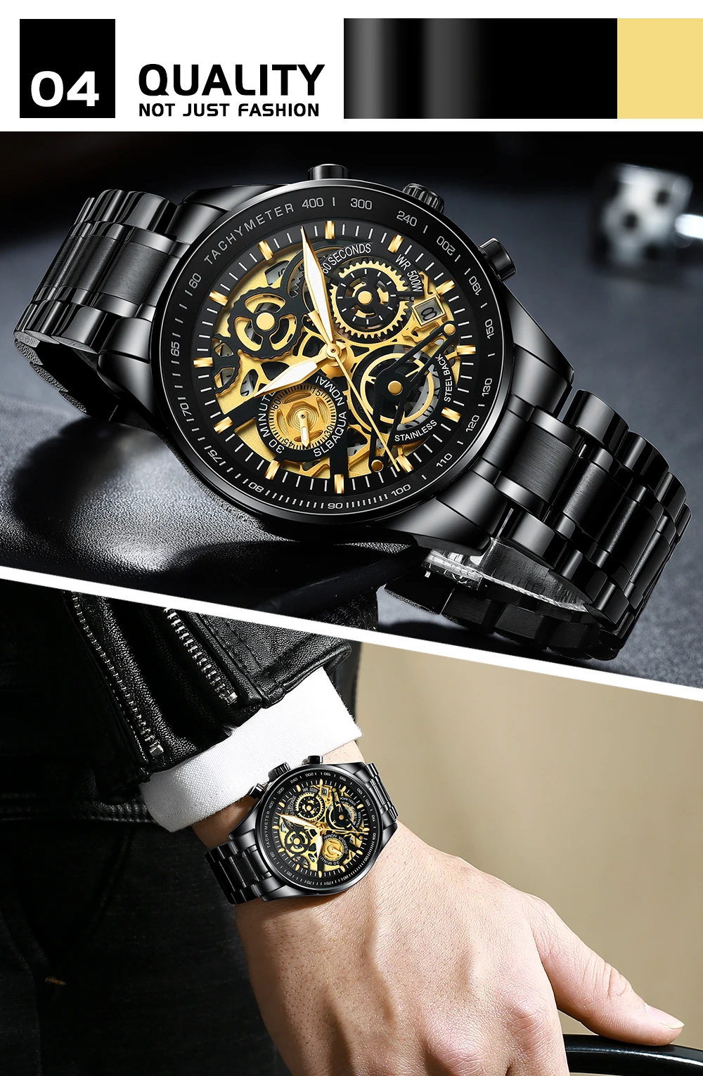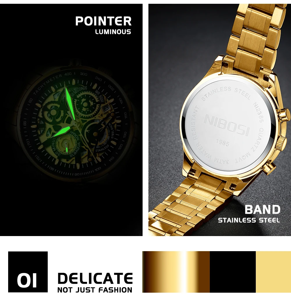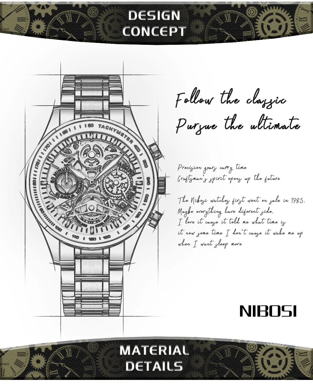 Мужские часы NIBOSI, Оригинальные Водонепроницаемые модные роскошные часы с золотым скелетом, спортивные часы с полым циферблатом, мужские часы Relogio Masculino