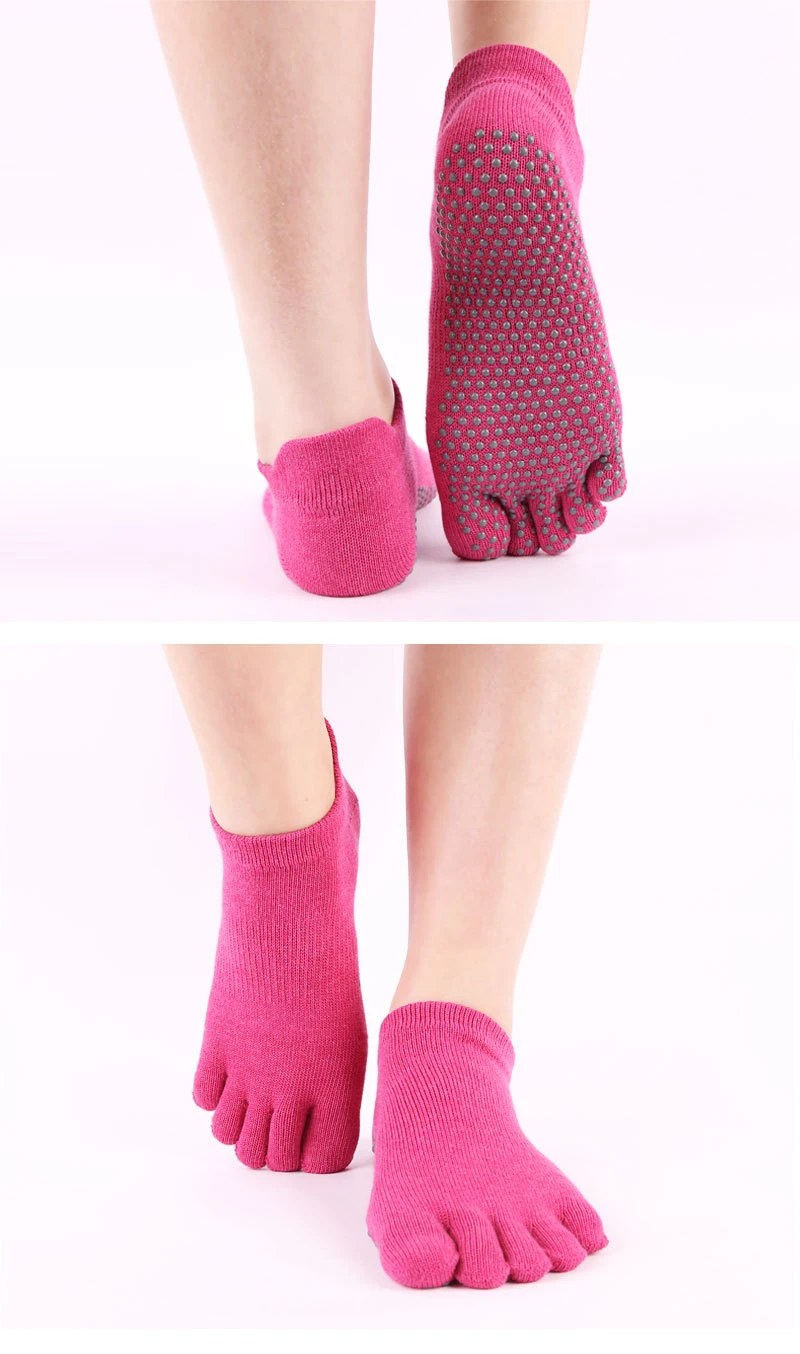 Женские нескользящие носки для йоги, для фитнеса, пилатеса, для тренировок, носки с пальцами, спортивные носки с пятью носками, высококачественные хлопковые носки-тапочки, 2 пары