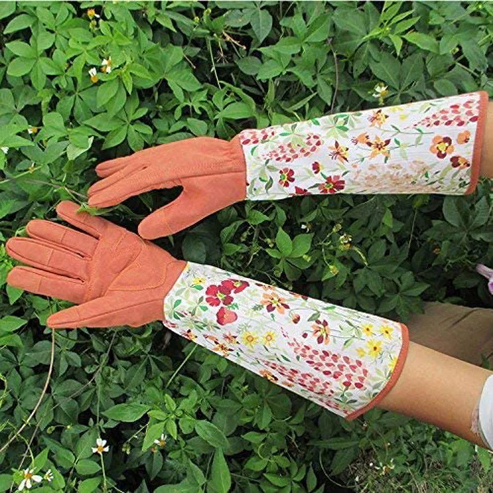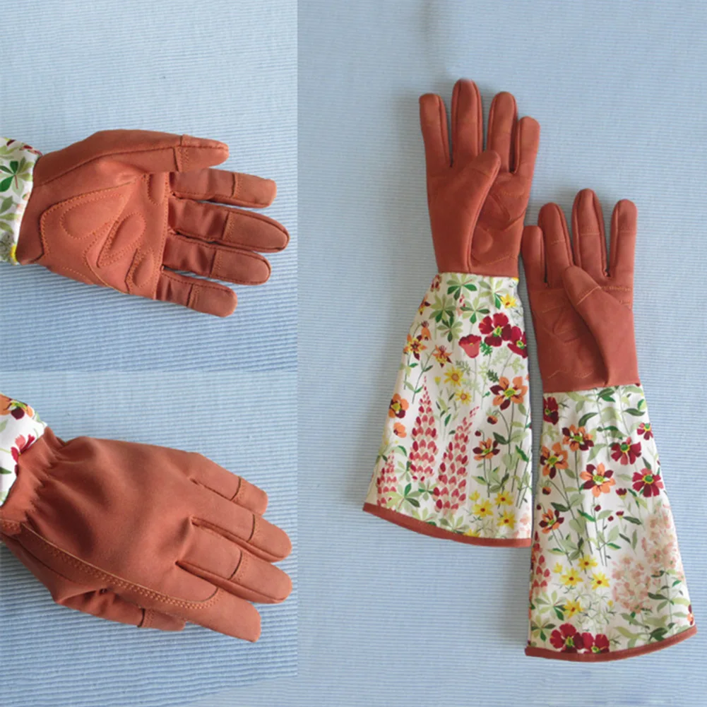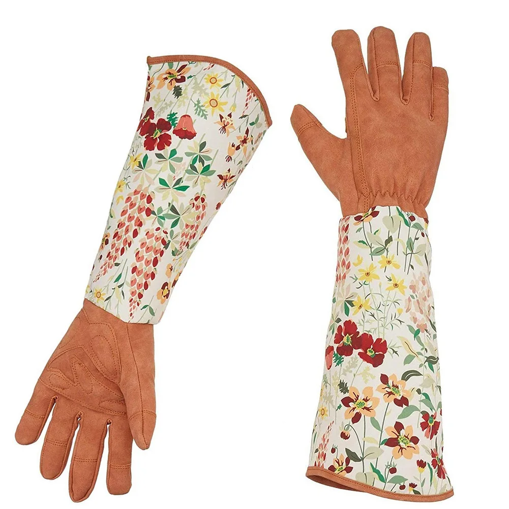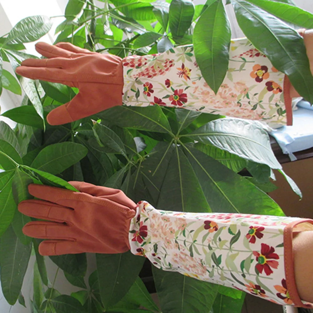 1 пара дышащие цветочные печати с длинными рукавами Защитная Подрезка растений в садоводстве перчатки