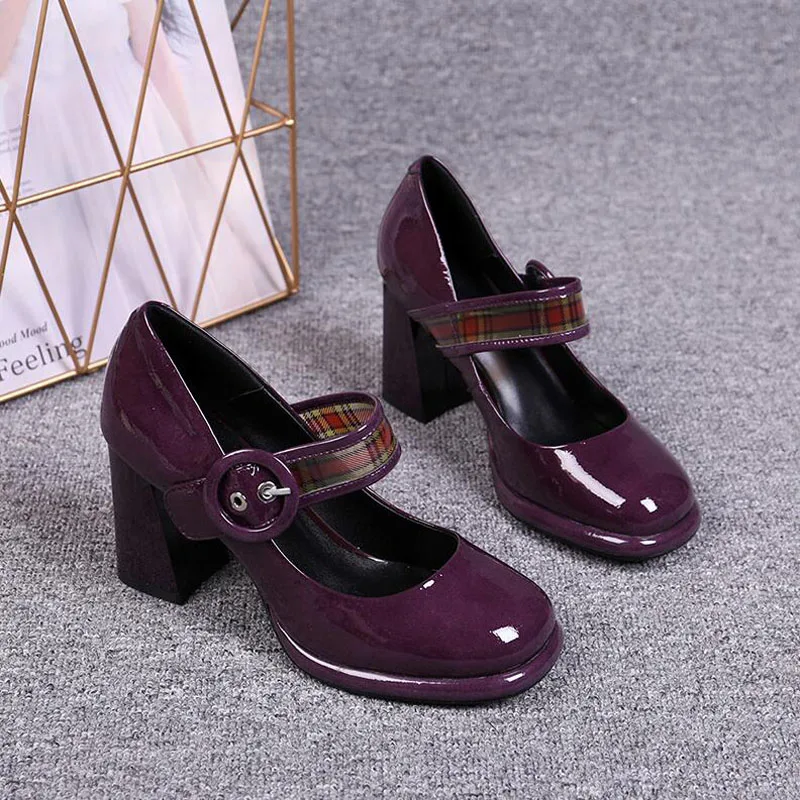 Новинка 2020 года; Пикантные женские туфли-лодочки с ремешком и пряжкой; Цвет фиолетовый, черный; Сезон весна-осень; Женские модельные туфли на высоком каблуке 7 см; Вечерние свадебные туфли; Hc3-25