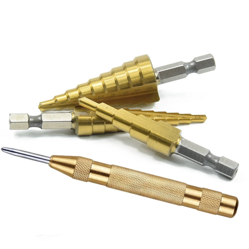 5 ступенчатых сверл: 4-12 мм (4 мм, 6 мм, 8 мм, 10 мм, 12 мм)