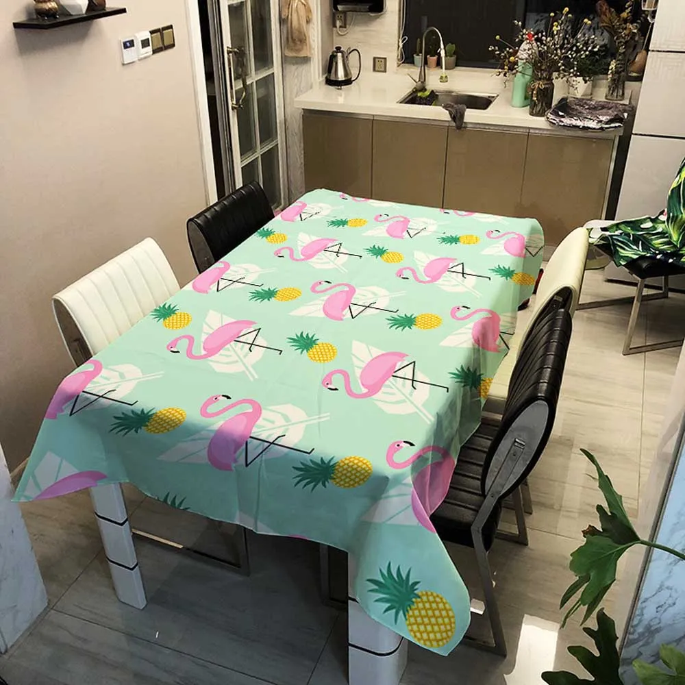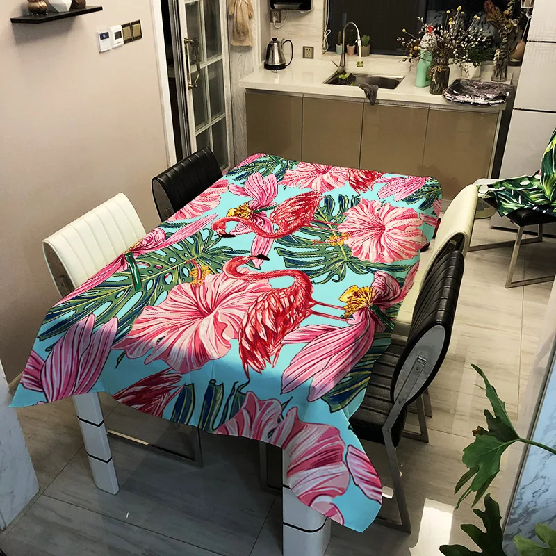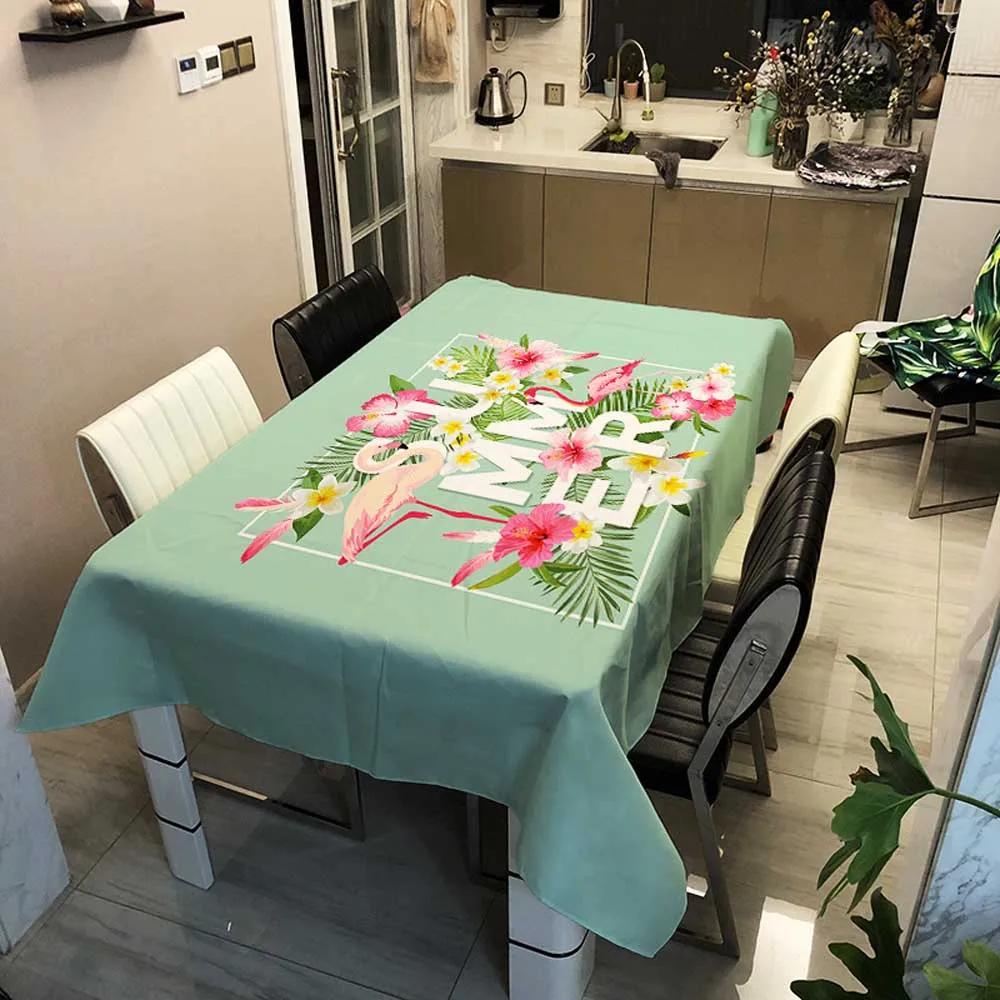 Декоративная льняная плотная скатерть с фламинго, розовая Водонепроницаемая маслостойкая прямоугольная скатерть для свадебного обеденного стола, скатерть для чайного столика
