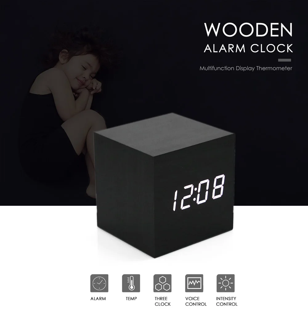 Оригинальный Деревянный светодиодный Будильник Despertador, контроль температуры, светодиодный дисплей, электронные настольные цифровые часы, 2019