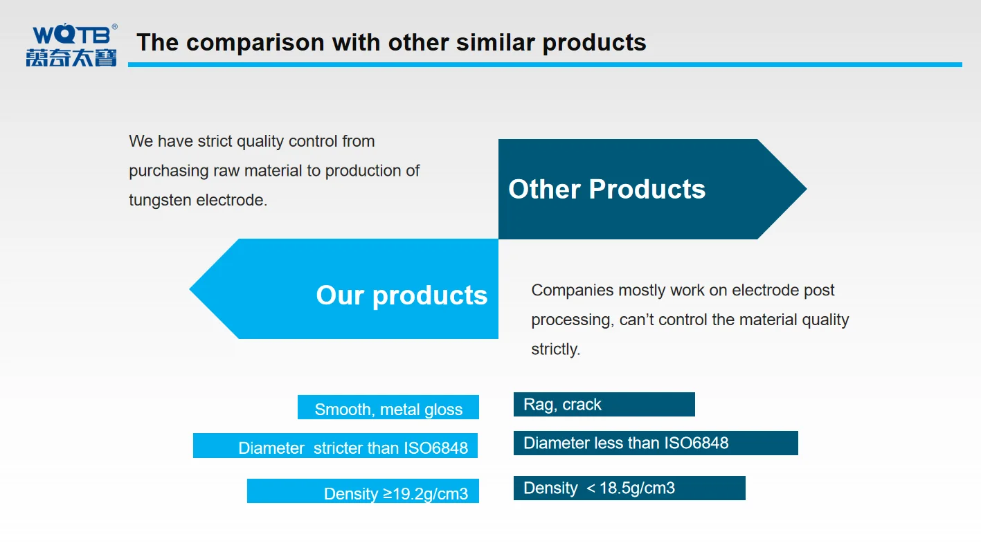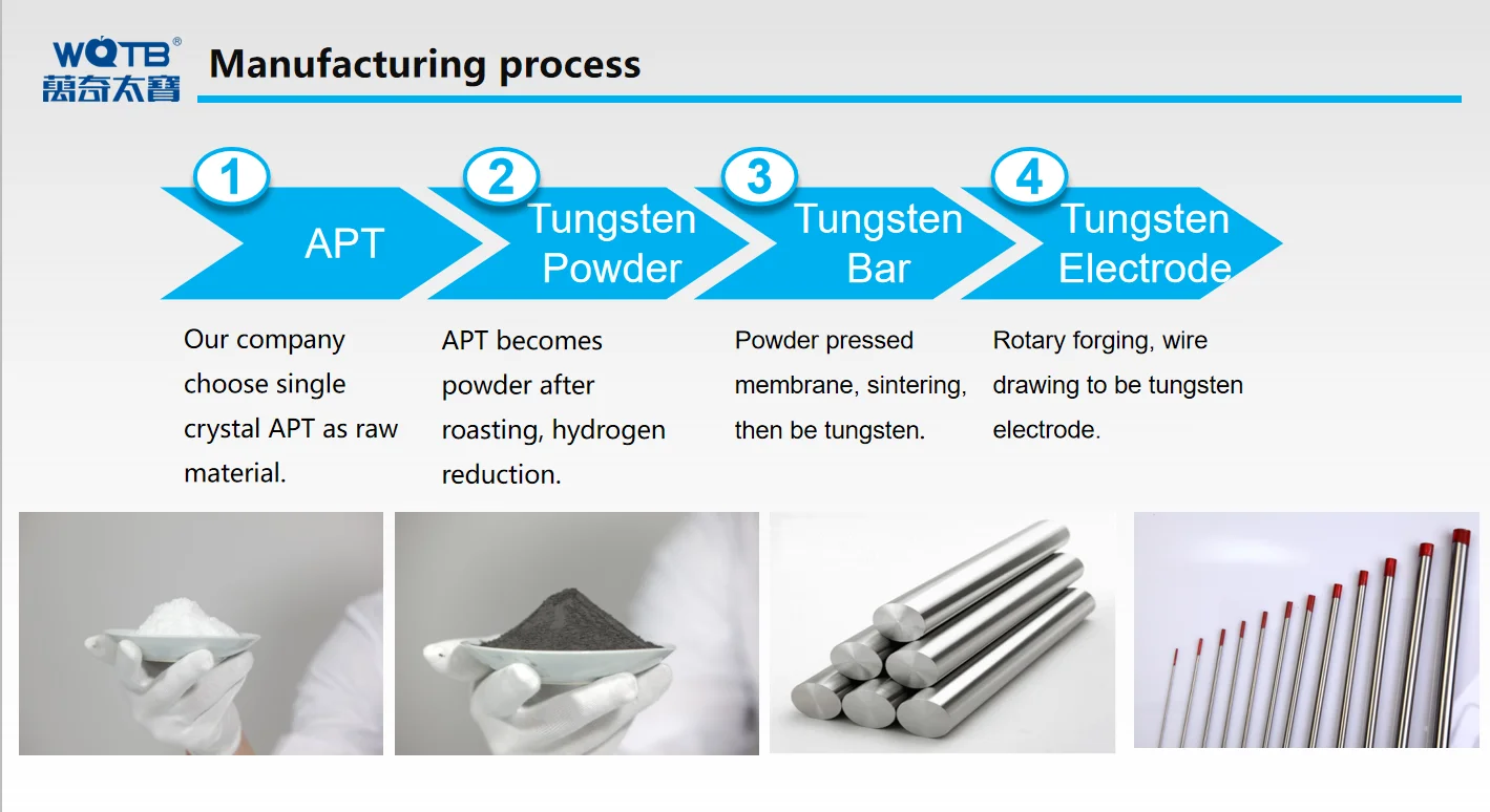 Продукты Особенности:Этот материал хорошо подходит для орбитальных труб с низким напряжением, постоянного тока, труб, тонких листов и небольших частей, этот материал обеспечивает низкую емкость тока,Низкое зажигание дуги, хорошая стабильность дуги и нерадиоактивный.