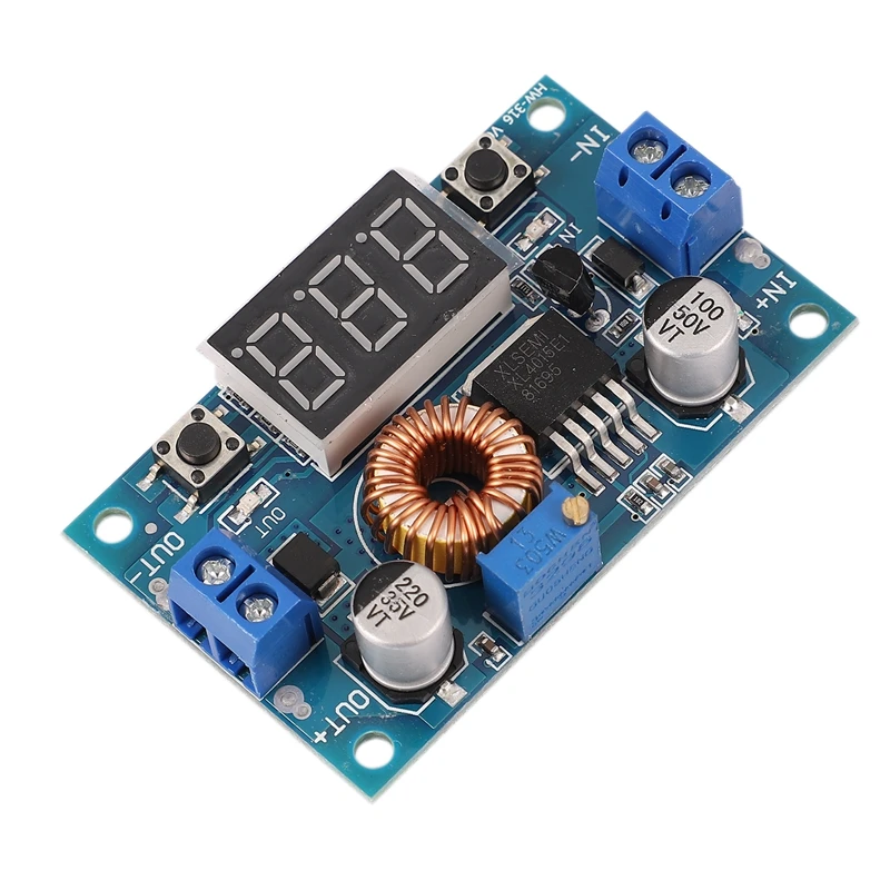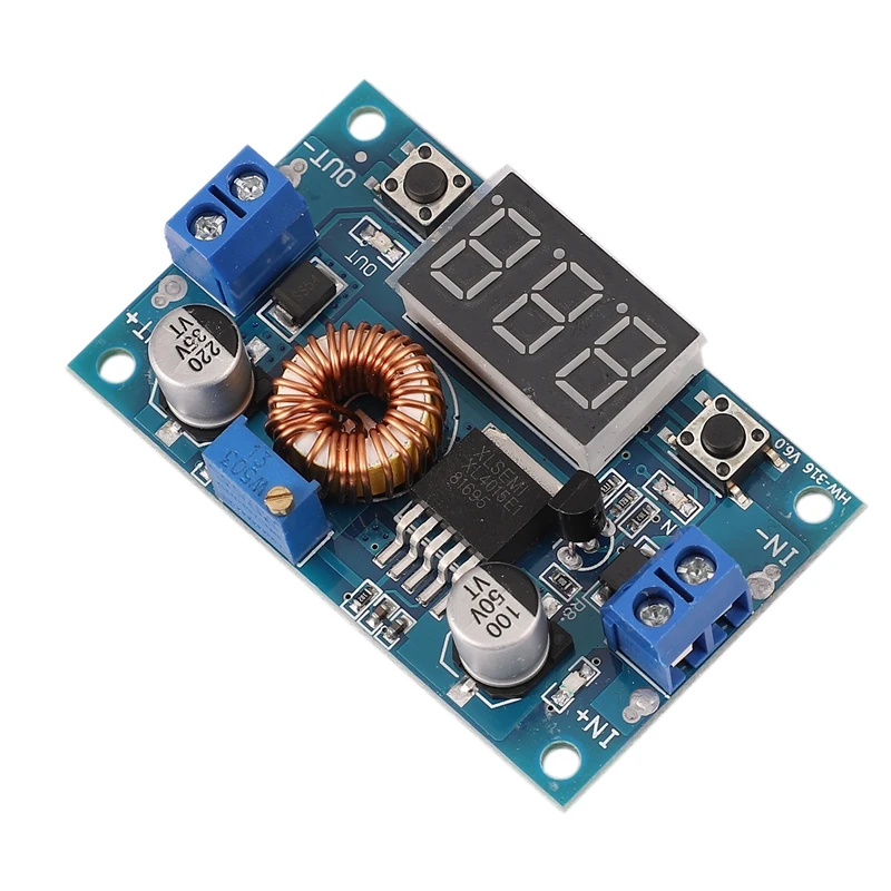 Этот продукт представляет собой модуль постоянного/постоянного тока с фиксированной частотой 180 кГц PWM buck (понижающий), способный управлять нагрузкой 5A с высокой эффективностью, низкой пульсацией и отличной линией и регулировкой нагрузки. Модуль с измерителем напряжения для отображения входного напряжения и выходного напряжения, И напряжение может быть исправлено через кнопку, чтобы улучшить точность вольтметра.