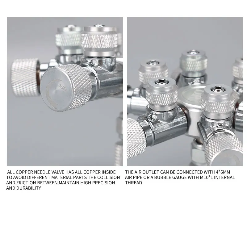 Обеспечивает удобство в распределении потока воздуха до 2-6 различных резервуаров.