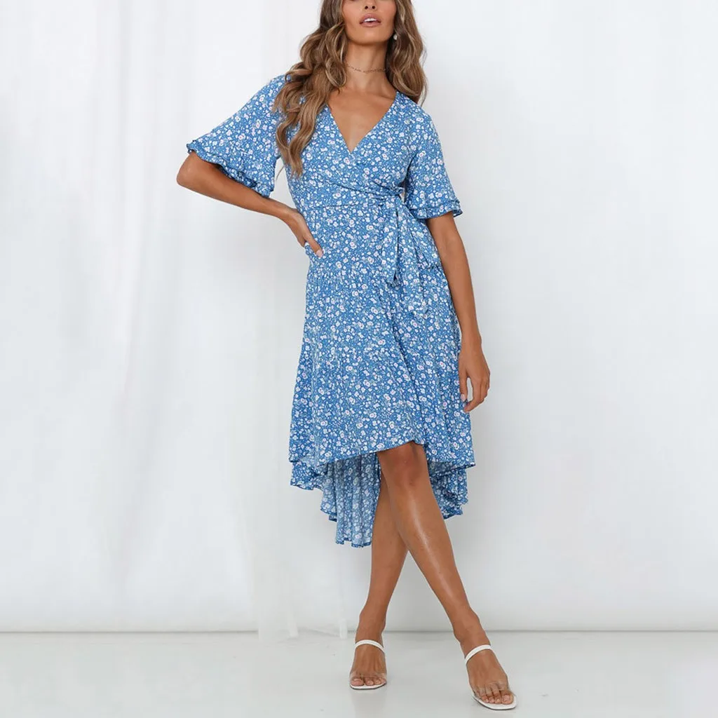 Женское сексуальное мини-платье на бретельках с v-образным вырезом и рюшами для вечеринки