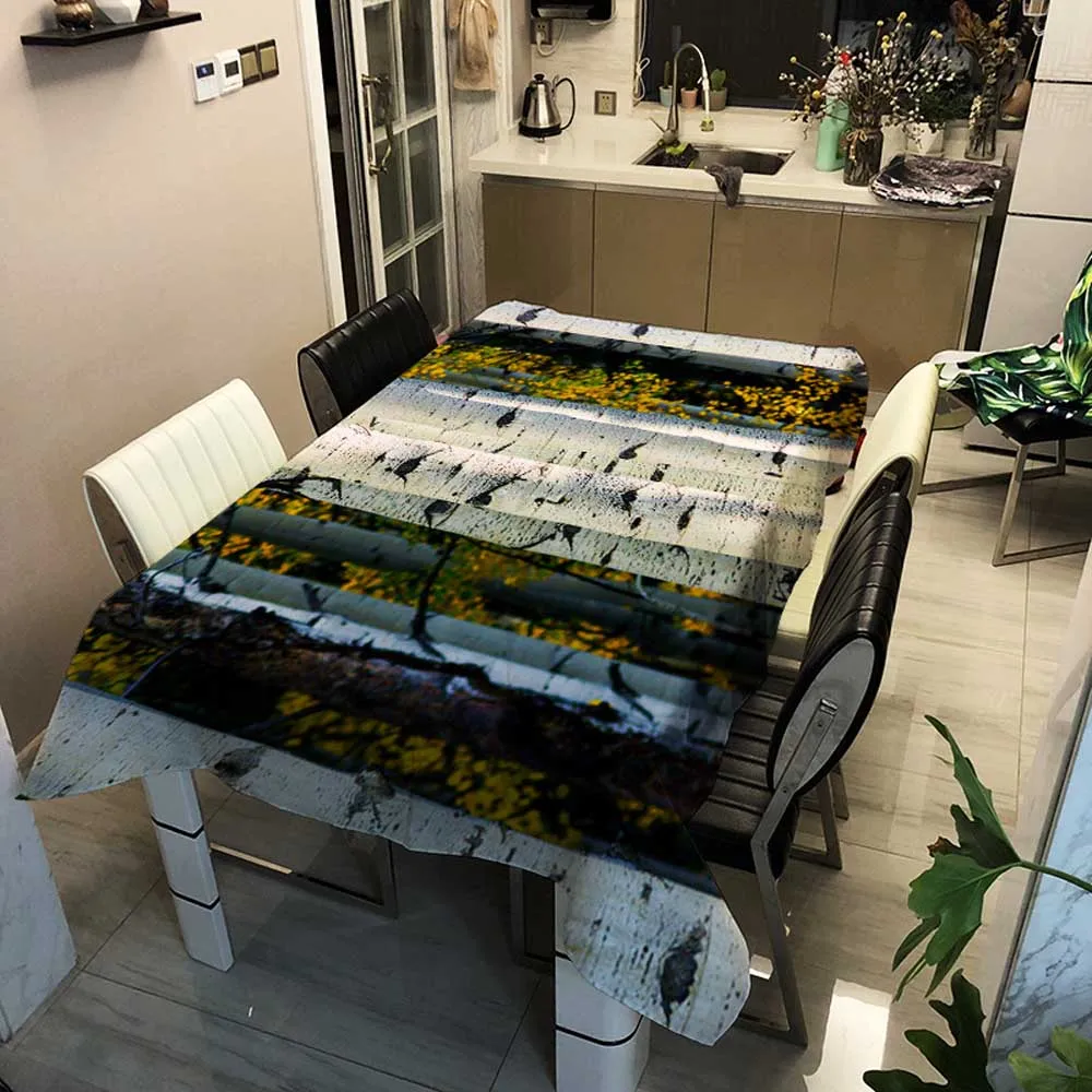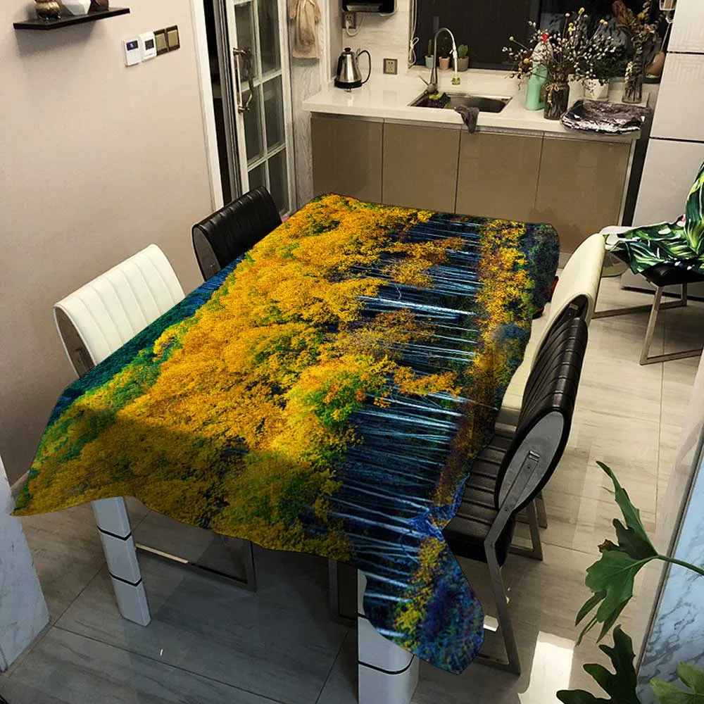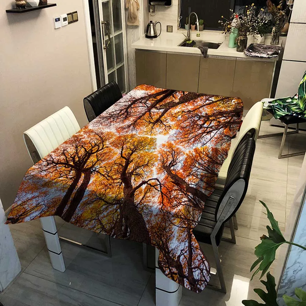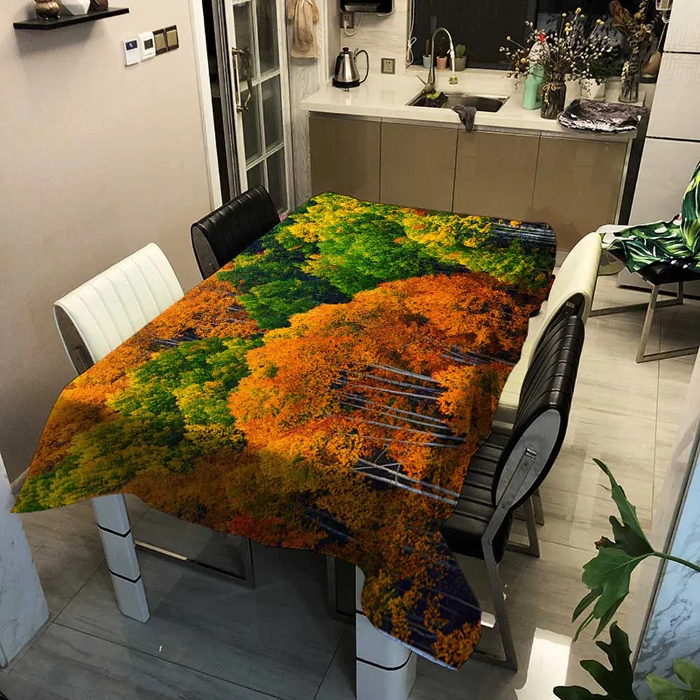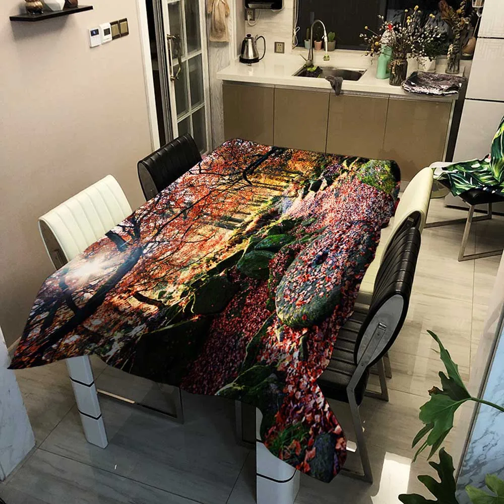 Скатерти с изображением леса, живописные сезоны, прямоугольная художественная камина, гобелен, скатерть для чая, кофе, скатерть