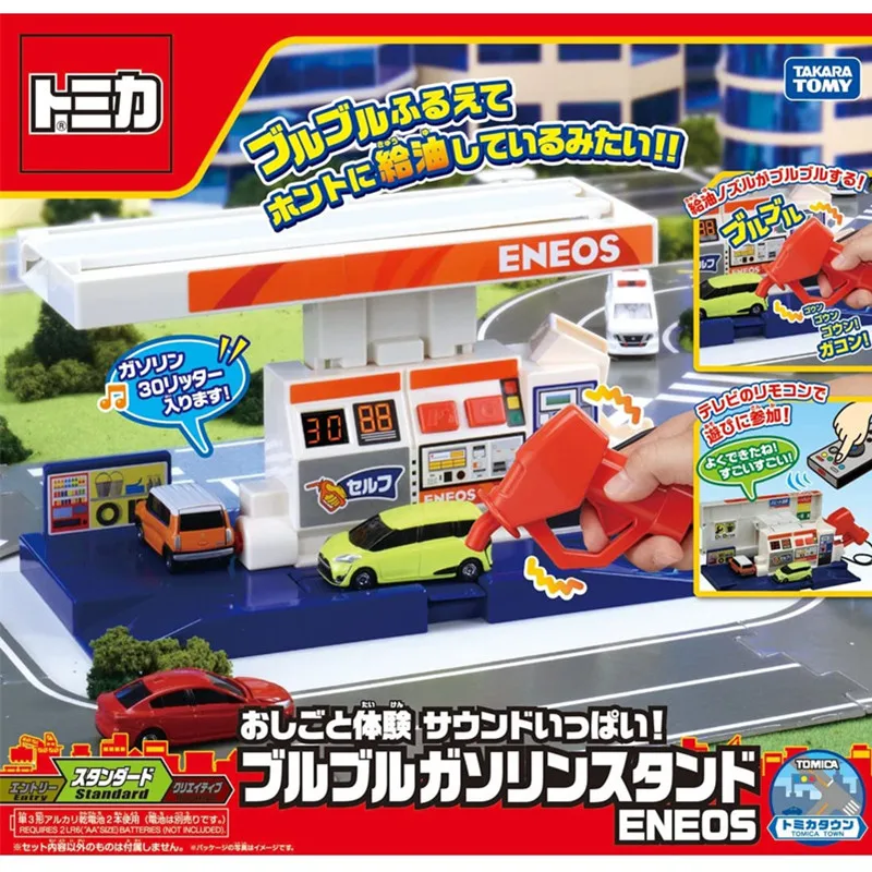 Это практическая заправочная станция, которую вы можете играть с томикой. Вы можете испытать заправку к томике с реалистичным соплом для заправки с голосом и вибрацией. Цифровой счетчик работает вместе во время заполнения бензина.