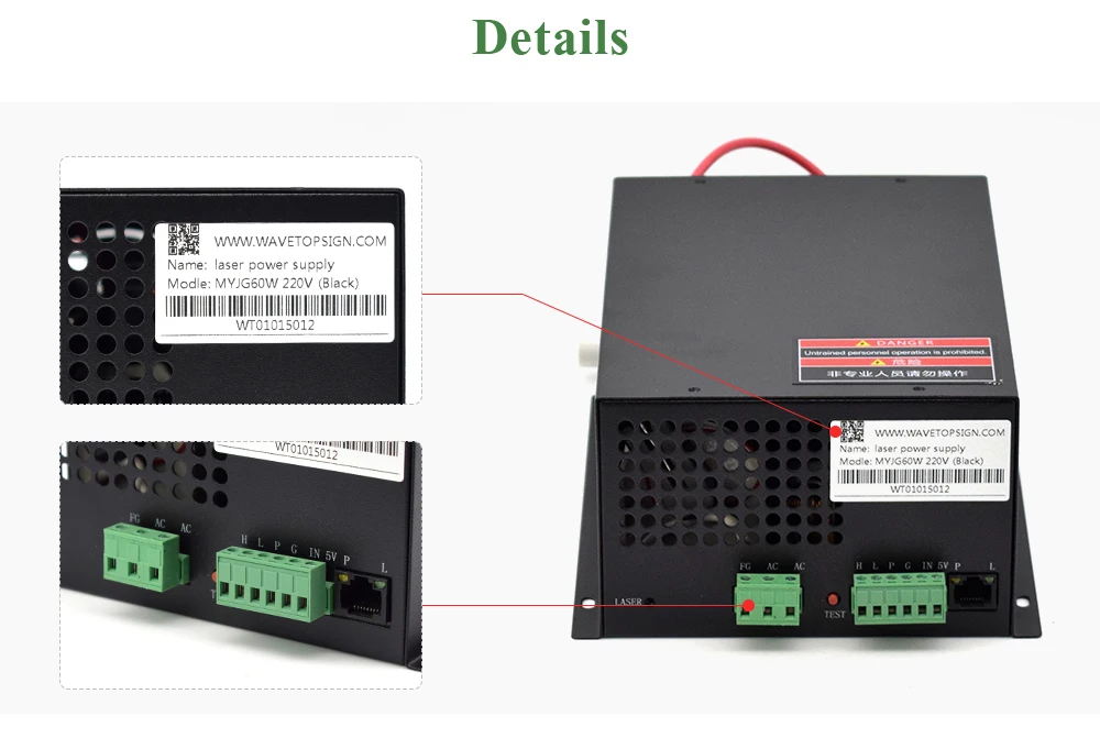 4. Источник питания имеет функцию защиты от открытого замыкания: при условии хорошей защиты от заземления источник питания может работать в открытом замыкании в короткие сроки, И затем он может избежать повреждения, вызванного растрескиванием лазерной трубки.