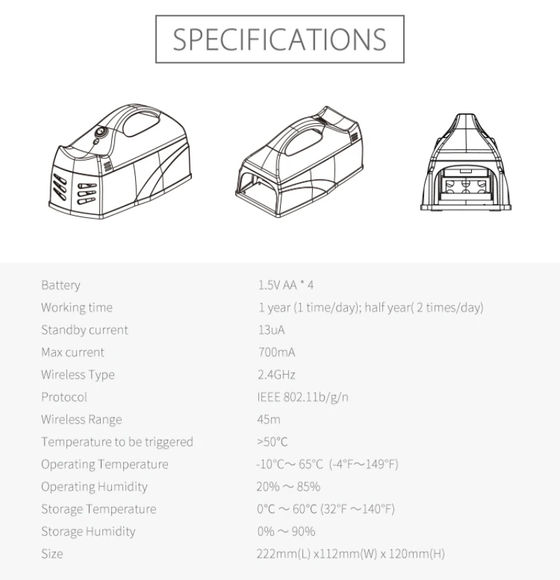 Срок службы батареи: убивает до 40 крыс на комплект батарей